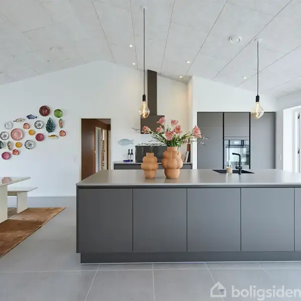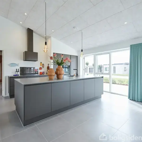 Velkommen til Munkebakken 32, boligen breder sig over 186 kvm med en integreret garage på 58 kvm. Lyse, engoberede mursten, sorte arkitekttagrender og et stilrent sadeltag uden udhæng bidrager til en enkel og moderne æstetik, som går igen indenfor. Entréen leder ind i husets ene værelsesafdeling med eget badeværelse, tre gode værelser på hver 12 kvadratmeter og en dør, der kan lukkes. Ideelt, hvis du har børn/teenagere. Det gennemgående køkken-alrum er husets naturlige samlingspunkt. Store vinduespartier mod øst og vest giver et skønt dagslys, som kan nydes fra den indbyggede vinduesbænk. Med udgang til terrasser på begge sider af huset er frokost i solen altid inden for rækkevidde, og her er plads til både hverdagsliv og fest. Gæster kan fra serviceres fra den indbyggede hjemmebar, hvor kaffenørden også kan indrette sin egen lille station. Når dagen går på hæld, kalder det rummelige soveværelse, hvor et østvendt vinduesparti med udgang til haven venter på at byde morgensolen velkommen. Med 19 kvm er der plads til at lege med indretningen, hvis du drømmer om en blød stol i hjørnet eller et sminkebord. Solide mængder skabsplads og et privat badeværelse fuldender voksenafdelingen. Størrelsen på den isolerede garage svarer til en pæn, lille lejlighed. Med vinduer, gulvvarme og et lækkert epoxygulv får du reelt et alsidigt multirum med et hav af anvendelsesmuligheder. Via garagen er der adgang til et stort og praktisk bryggers med masser af opbevaringsplads. Med hele fire haveudgange inviterer huset naturen indenfor. Boligens forskudte længekonstruktion skaber flere naturlige lækroge og hyggelige uderum, hvor du kan følge solen fra morgen til aften. Huset er udstyret med et avanceret varmegenvindingsanlæg, som på én og samme tid sikrer et optimalt indeklima og et lavt energiforbrug. Huset opvarmes med fjernvarme. Se mere her: https://miltonhuse.dk/oversigt/huse/munkebakken-32-8370-hadsten