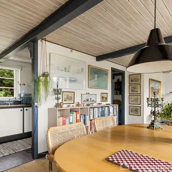 Fleksibelt fristed med charme og udsigt Der er steder, hvor roen, rummeligheden og potentialet mærkes med det samme – og det her er ét af dem. Et rummeligt fritidshus med atmosfære og plads til store sammenkomster, familiebesøg på kryds og tværs – og måske endda en lille ekstraindtægt via udlejning. Her venter et særligt feriehelle i landlige omgivelser med kig til markerne, der giver et uforstyrret vue, så langt øjet rækker. Ejendommen er super charmerende med bindingsværk i rigtig Morten Ko