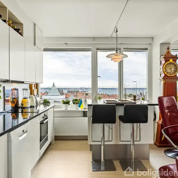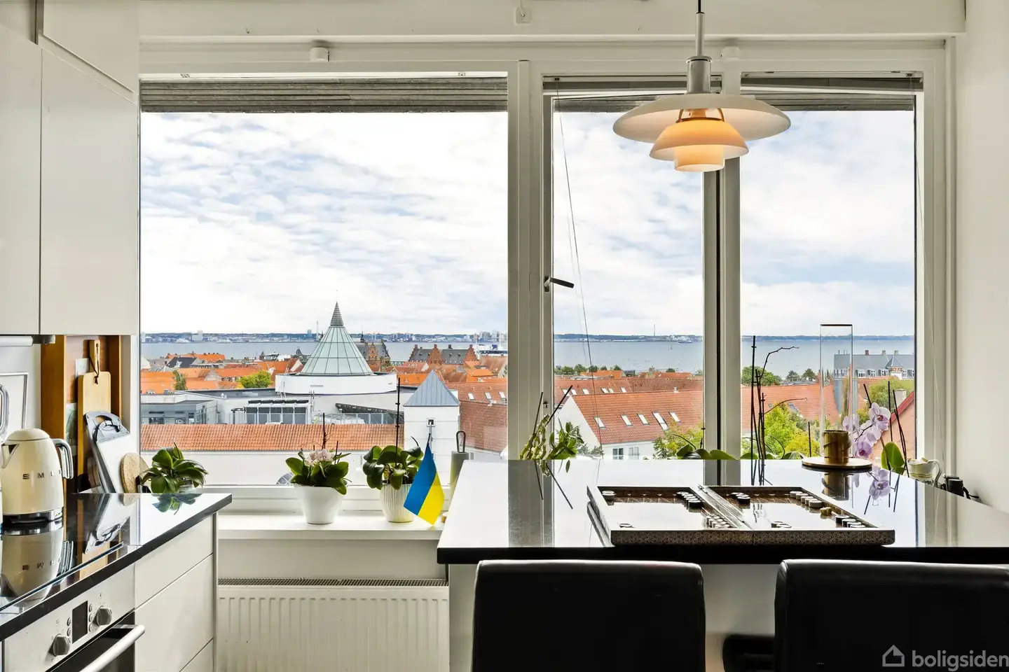 Leder du efter en bolig, der kombinerer historisk arkitektur, moderne komfort og en af Helsingørs smukkeste udsigter? Så er denne lejlighed i den ikoniske og fredede Utzon-bygning noget helt særligt.Bygningen er tegnet af den verdensberømte danske arkitekt Jørn Utzon, der også står bag Operahuset i Sydney. Som en del af Helsingørs visionære byudvikling, er ejendommen i dag fredet på grund af sin arkitektoniske og kulturhistoriske værdi. Her får du altså ikke bare en lejlighed – men en del af dan
