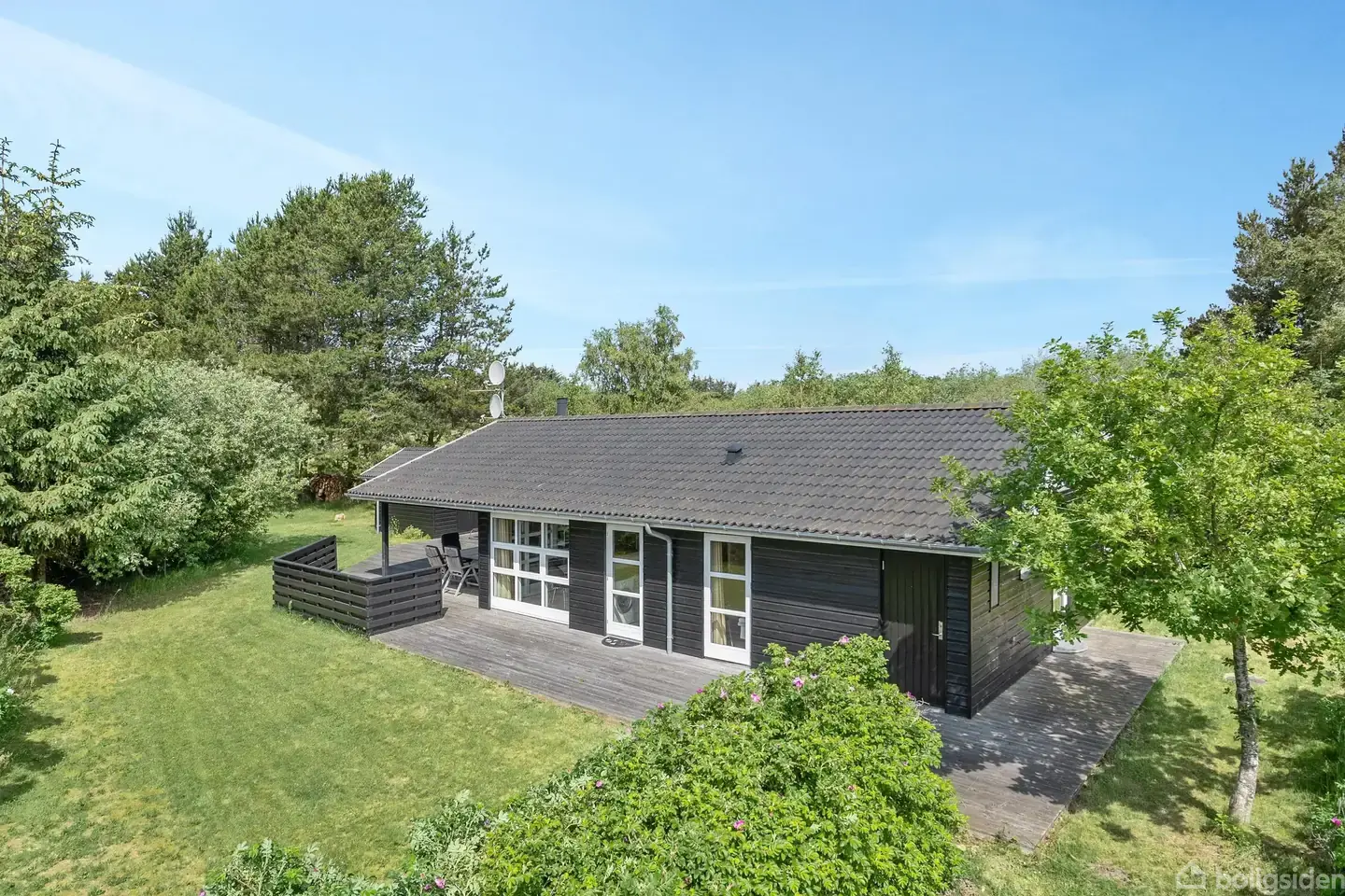 Velkommen til Musvågevej 140, 9982 Ålbæk – et charmerende sort træsommerhus med en perfekt beliggenhed for dem, der ønsker ro og naturEntre til fordelingsgang. Til venstre er et gæstetoilet og til højre det store badeværelse med niche, hjørnebadekar og sauna. Både toilet og badeværelse. Videre ind findes de 3 soveværelser, 1 på højre side og 2 til venstre. 3 store gode værelser med fin skabsplads. Værelset mod syd har ydermere udgang til terrassen. Fra gangen er der stige op til en hems med sove