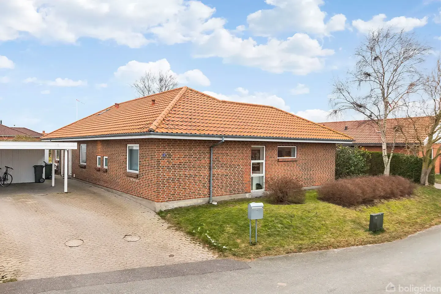 Indbydende og velholdt villa i attraktivt kvarter. På en rolig vej i et eftertragtet, bynært kvarter finder du denne velindrettede villa på 149 m², opført i 1988 og løbende moderniseret. Køkken og badeværelser er senest renoveret i 2017, hvilket giver boligen et moderne og tidssvarende udtryk. Boligen er ideel til familien, der ønsker god plads og en gennemtænkt planløsning med plads til både fællesskab og privatliv. Du bydes velkommen i et praktisk bryggers/entré med god opbevaringsplads. Herfra er der adgang til et dejligt rummeligt køkken i åben forbindelse med spisestuen, som leder videre til den hyggelige, nedsænkede stue. Huset rummer i alt tre værelser, et kontor og et soveværelse. To af værelserne har adgang til hemse med talrige udnyttelsesmuligheder. Boligen råder over to pæne badeværelser, hvoraf det ene ligger i direkte forlængelse af soveværelset. Udenfor venter en nem og overskuelig grund, primært anlagt med græs og en dejligt stor terrasse med eftermiddagssol. Til ejendommen hører desuden et rummeligt skur og en carport. På taget er opsat solceller. Lige over for ejendommen findes grønt areal med legeplads, fodboldbane og sankthansbål i juni måned. Området er særdeles attraktivt med trygge stisystemer og kort vej til skole, institutioner, indkøb, grønne områder og fritidsaktiviteter i Åstrup IF – perfekt til børnefamilien. En rummelig og velholdt villa med en spændende indretning og attraktiv beliggenhed – klar til nye ejere.