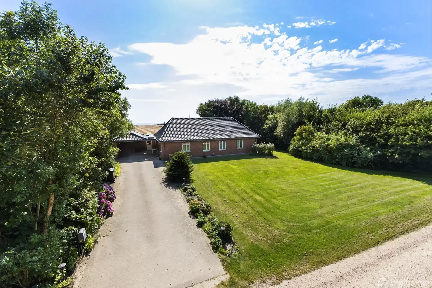 Åbent hus med tilmeldingskrav 2/2 - klik på billede - Unik beliggenhed med fantastisk udsigt over Ringkøbing Fjord og med kort afstand til Ringkøbing. De 135 veldisponerede bolig m2 er bygget i 2009 og byder på to gode værelser samt stort soveværelse med direkte adgang til eget badeværelse. Ejendommens andet badeværelse er placeret i forbindelse med entreen, hvor også vaskefaciliteter er diskret placeret bag det uundværlige viktualierum. Fra entreen træder man ind i det store, lyse og rummelige køkken, som med det sydvendte vinduesparti til fulde udnytter den enestående udsigt mod syd, hvor øjet drages mod fjorden samt klitterne langs Vesterhavet. Stuen ligger i forlængelse af køkken og spiseplads og herfra har man mulighed for at træde ud på den sydvendte og solrige terrasse. Haven byder desuden på flere gode lækroge og den store carport med redskabsrum tilknyttet er placeret, så man kan komme tørskoet ind, når bilen er parkeret. Med til ejendommen hører desuden et stort maskinhus på 220 m2, som giver spændende muligheder for bland andet værksted. Vi glæder os til at viser jer dette spændende hus og den fantastiske beliggenhed.