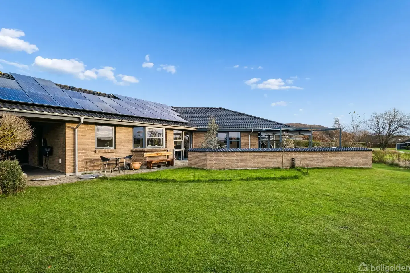 Velkommen til N P Danmarksvej 59 – en oase af moderne komfort og stil, hvor energi-effektive løsninger skaber et hjem i perfekt harmoni med naturen. Med sine 155 m² fordelt på ét plan, byder denne ejendom på hele fem værelser, der åbner op for mange indretningsmuligheder, herunder muligheden for at sammenlægge to værelser og skabe en separat voksenafdeling med et stort soveværelse, badeværelse og walk-in closet. Indretningen indbyder til en ligeså fleksibel som funktionel hverdag. Denne egenskab vil tilfredsstille både børnefamilier og de, der søger et hjem, der tilpasser sig livets forskellige faser. Hjertet i hjemmet er uden tvivl det lyse og moderne alrum med HTH-køkken. Her finder vi troldtektlofter, der ikke blot bidrager til den æstetiske appel, men også sikrer en behagelig lydoplevelse i dagligdagen. Villaen er yderst energieffektiv med både jordvarme og solceller, hvilket resulterer i særdeles lave energiudgifter. Gennem hele hjemmet er der lagt gulvvarme, en virkelig luksus for komforten. Herudover er boligen udstyret med et moderne Genvex-anlæg fra 2023, hvilket garanterer et sundt indeklima og yderligere energieffektivitet. Udendørs byder ejendommen på en generøs grundstørrelse på 869 m². Her er der god plads til at udfolde sig, hvad enten man er til leg med børnene, afslapning i solen eller hyggelige familiearrangementer. Hertil byder ejendommen desuden på en 34 m² carport og et 12 m² isoleret udhus. Beliggenheden er præget af god afstand til naboer, store grønne arealer og med naturen tæt på. Her er fyldt med liv, børnefamilier og trampoliner. Det gode naboskab skinner igennem og både midaldrende og familier med børn i alle aldre har forelsket sig i området. I gåafstand har i nemlig både institutioner, indkøb, svømmehal og et væld af fritidsaktiviteter, og børnene kan hurtigt komme i skole. Skal I til Horsens, tager det blot 15 minutter i bil og omtrent det samme med bus. Århus er ligeledes kun 30 min. væk.