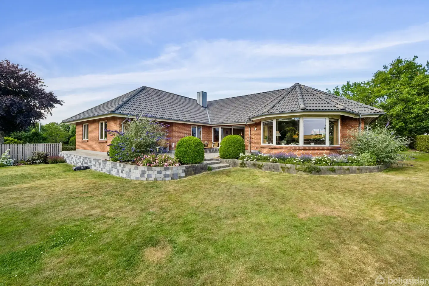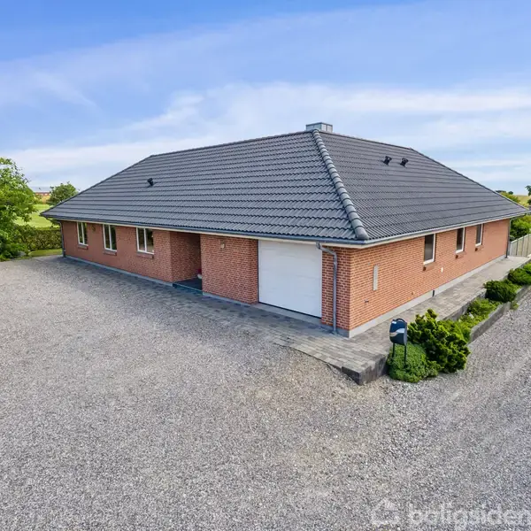 Vinkelbygget parcelhus i 1 plan - 204 m2 + 37 m2 integreret garage - må vi byde på en fremvisning også i virkeligheden?Her er et virkelig velbygget kvalitetshus - en villa, som har kostet langt mere at opføre end hvad den sælges for i dag. Huset ligger på en 1.518 m2 stor grund, hvor ejendommen kun grænser op til en naboejendom på en side. Ellers grænser boligen op mod åbne marker.Der er en grusbelagt indkørsel foran huset og på bagsiden er en pragtfuld sydvendt fliseterrasse samt have. Der er s