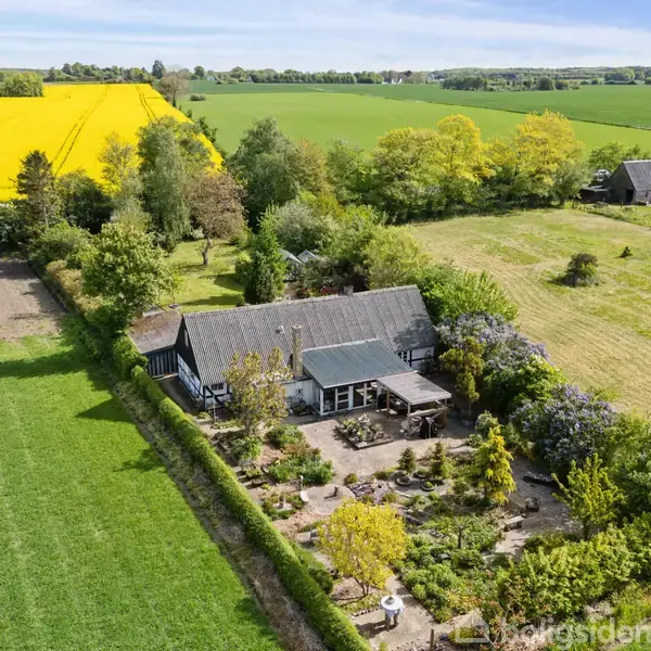 Denne charmerende villa fra 1800 ligger tilbagetrukket på en stor grund i naturskønne omgivelser nær Fuglebjerg. Ejendommen tilbyder ikke blot en privat beliggenhed og en hyggelig boligoplevelse, men også et enestående udemiljø, der inviterer til afslapning, havearbejde og naturskønne stunder, da I ydermere kan nyde udsigt til åbne marker og skov i horisonten. Villaen er placeret på en rummelig grund på 2.172 kvadratmeter, som rummer et sandt paradis for haveentusiasten med både pergola, små kr