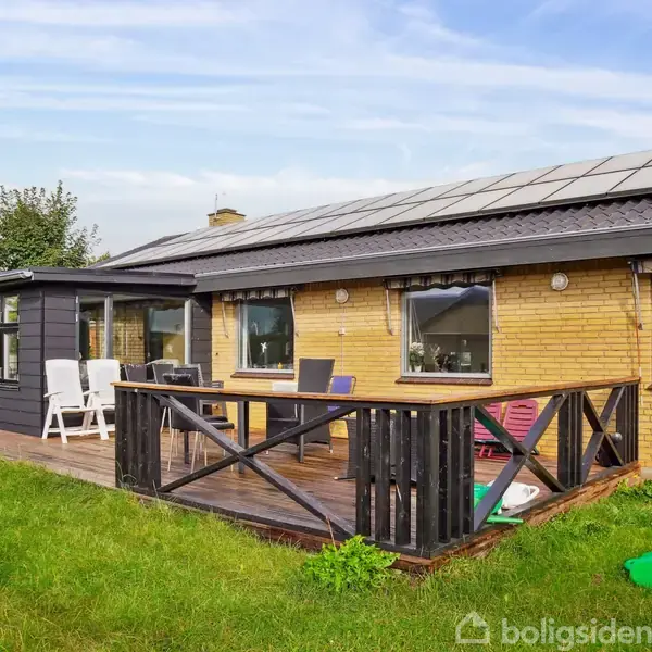 Huset ligger i et ældre villakvarter med gåafstand til gode dagligvarebutikker, skoler, daginstitutioner og DSB-station. Alle indvendige vægge og gulve er skiftet og det samme er el- vand- og varmeinstallationer. Køkkenet er ligeså skiftet, badeværelset er renoveret og der er bygget en udestue. Indeholder: Entré, gæstetoilet, badeværelse med bruseniche, børneværelse og soveværelse med indbyggede skabe. Der er mulighed for at etablere et ekstra værelse. Stue med udgang til udestue og derfra udgan