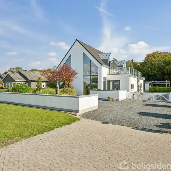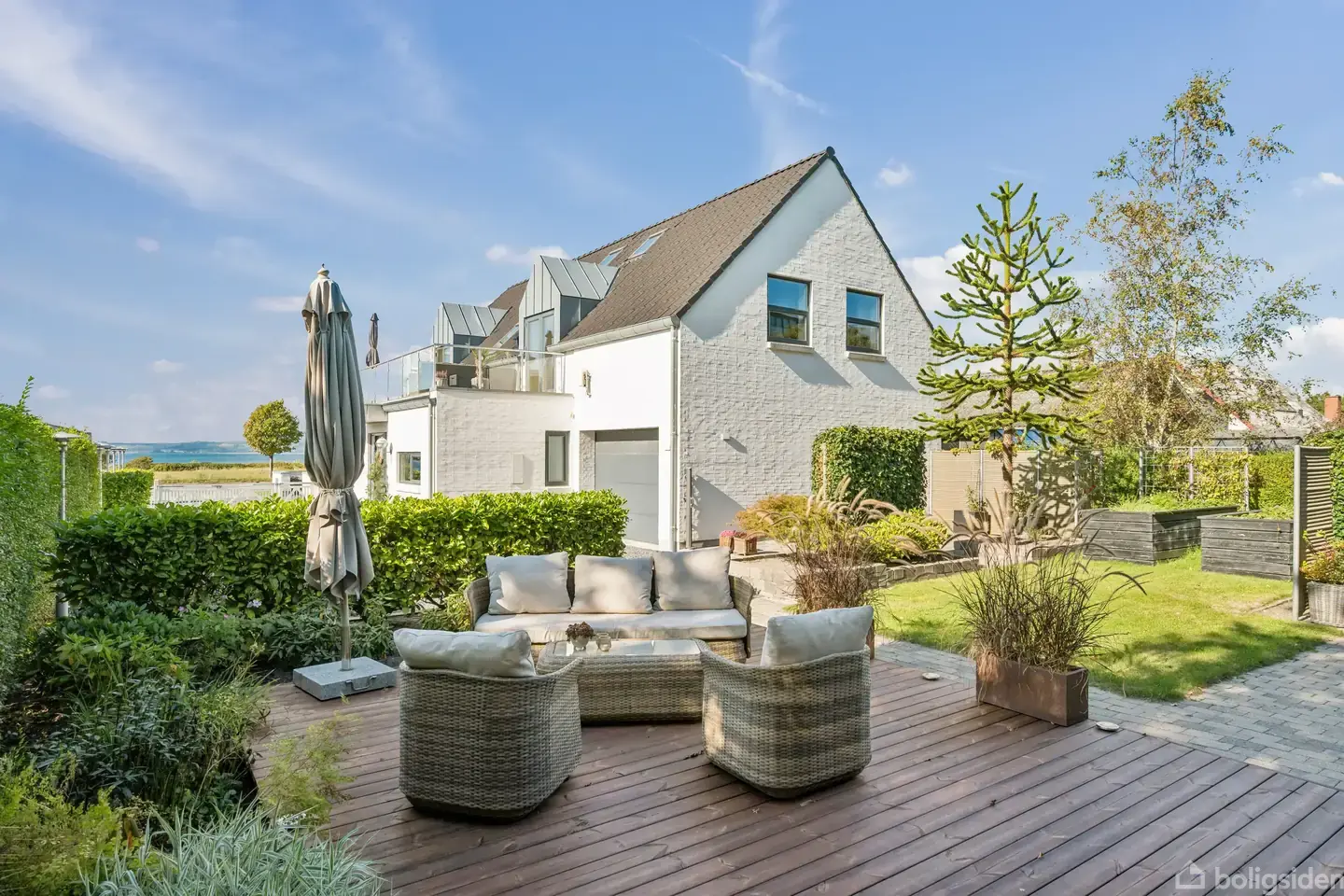 Her er ikke gået på kompromis med kvalitet, materialevalg eller udsigt. På Ndr. Strandvej, i 1. række til vandet og med en fantastisk udsigt over Vigen og Mols Bjerge er rammerne sat til en nye familie. I får en enestående 180-graders syd- og vestvendt panoramaudsigt, der kan nydes fra de solrige terrassearealer – det perfekte sted at tilbringe lange sommeraftener med udsigt over vandet med Mols Bjerge i baggrunden.Villaen er opført i 2011 og rummer hele 184 veludnyttede m² fordelt på to etager.