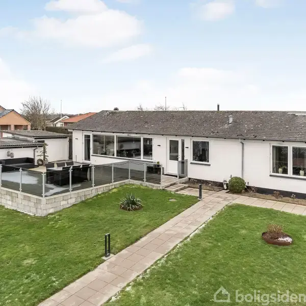 På Nedergade 10 i Fynshav udbydes denne skønne og højtbeliggende villa, hvor udsigten til vandet ganske enkelt stjæler opmærksomheden. Her får du en bolig, hvor beliggenhed, komfort og moderne løsninger går op i en højere enhed. Villaen er flot moderniseret og fremstår indflytningsklar med et veldisponeret boligareal, der udnytter hver eneste kvadratmeter optimalt. De store vinduespartier inviterer lyset indenfor og sikrer en imponerende panoramaudsigt over vandet – en udsigt, der kan nydes både inde og ude. Villaen indeholder blandt andet en udsigtsstue i åben forbindelse med køkken, et stort badeværelse samt to rummelige værelser og walk-in-closet. Derudover er der både et praktisk bryggers og en indbydende entré. Boligen er energioptimeret med både varmepumpe og Genvex-anlæg, hvilket giver et behageligt indeklima og lave driftsomkostninger. Fra opholdsmiljøet er der direkte adgang til den solrige udsigtsterrasse, hvor du kan nyde solen dagen lang og følge årstidernes skiften over vandet. Terrassen og udelivet er noget helt særligt. Her hersker en utrolig ro – et sted der indbyder til fordybelse og nærvær. Forestil dig at sidde i slåbrok med kaffen i hånden og opleve solen stå op over vandet, eller måske endda sove ude på terrassen og vågne til det smukke morgenlys. Også fra soveværelset kan solopgangen nydes – ganske enkelt en fantastisk start på dagen. På grunden finder du desuden en meget anvendelig udhusbygning/disponibelt rum, som ligeledes har en super havudsigt. Bygningen er udstyret med egen varmepumpe og åbner op for mange anvendelsesmuligheder – hvad enten det skal bruges til gæster, hjemmekontor, hobbyrum eller teenageafdeling. Ejendommen ligger på et højtbeliggende grundstykke, der understreger den frie udsigt og den ugenerede atmosfære. Til villaen hører også en garage på 30 m² med elport, som fuldender helheden af komfort og funktionalitet. En ejendom, der skal opleves – perfekt til dig, der drømmer om en moderne villa med fantastisk udsigt og en attraktiv beliggenhed i Fynshav.