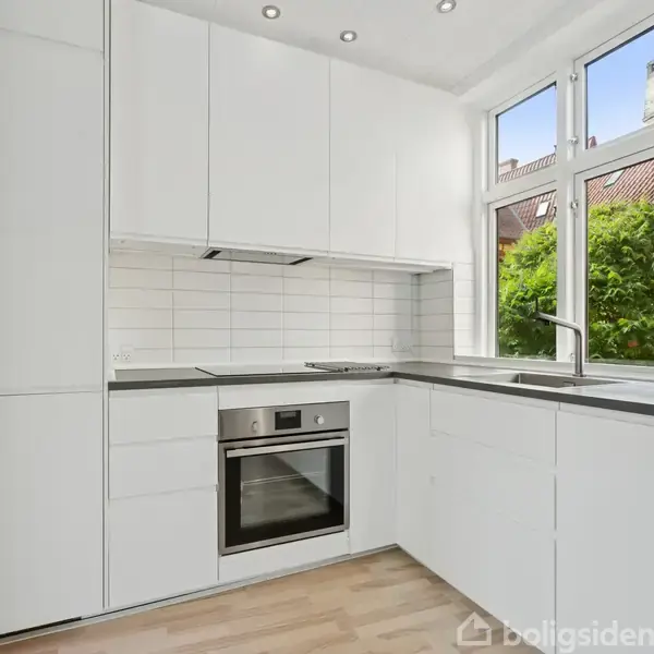 Velkommen til Nedergade 40, 1. tv. – en unik ejerlejlighed, som fordeler sig på hele tre plan og kombinerer moderne komfort med en skøn beliggenhed tæt på både natur og byliv. Lejligheden byder velkommen i en indbydende entré, som leder ind til det lyse og moderne køkken-alrum. Her er der god plads til både madlavning og hyggelige middage, og det stilrene køkken fremstår flot og tidssvarende. På førstesalen finder du et dejligt stort værelse, med fast skab. Nuværende ejer har anvendt dette væ