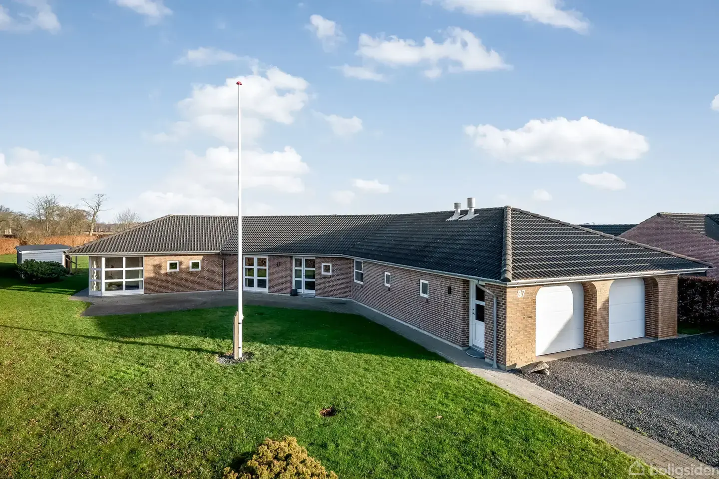 I et attraktivt og lukket villakvarter finder I denne arkitekttegnede og fuldmurede familievilla, som er opført i de absolut bedste materialer. Ejendommen er unikt tegnet af nuværende ejer – her er der tale om en gennemtænkt og personlig villa, hvor kvalitet og funktionalitet går hånd i hånd. Boligen er beliggende på en stor, nemt anlagt grund med smuk udsigt over åbne marker.Udelivet kan nydes i rolige og private omgivelser, og fra køkken-alrummet er der udgang til to skønne terrasser – en morg