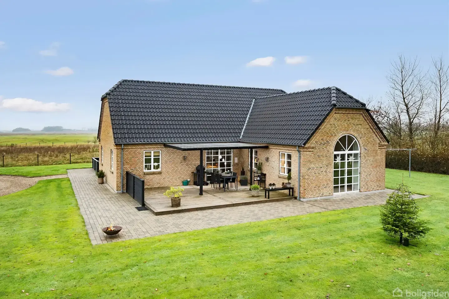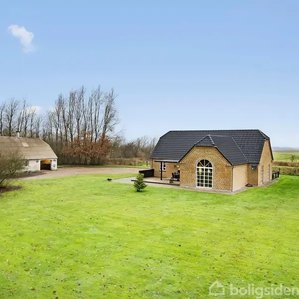 Åbent hus med tilmeldingskrav 3/2 - klik på billede - I udkanten af Ulfborg ligger denne landligt attraktive ejendom, hvor hverdagen får mere luft og udsynet bliver længere. Her bor man midt i landskabet med åbne marker omkring sig og et smukt kig mod fjorden – samtidig med, at der kun er ca. 2,5 km til byens indkøbsmuligheder, skole, daginstitutioner og øvrige faciliteter. Cykelstien ind til Ulfborg gør turen nem og tryg, og mod vest når I både Vesterhavet og Husby Klitplantage efter ca. 13 km. Hovedhuset er opført i 2001 i en charmerende, landlig stil og fremstår lyst og roligt med en behagelig atmosfære. Planløsningen er praktisk og gennemtænkt med entré og bryggers, et rummeligt køkken/alrum som boligens naturlige samlingspunkt, tre gode værelser – herunder soveværelset med udgang til haven – et badeværelse og en hyggelig stue med fransk dør og loft til kip. Førstesalen står uudnyttet, men er forberedt til udbygning for den, der ønsker ekstra plads eller flere disponible rum. Den overdækkede terrasse fungerer som et ekstra opholdsrum store dele af året. Her kan man sidde under tag, nyde udsigten over haven og forlænge udelivet langt ud på aftenen. Foran huset mod nord er der terrasse med udsigt til omkring halvdelen af ejendommens store grund på over 10.500 m², hvor området i dag er udlagt til små stier og fri natur. Her er rig mulighed for at skabe præcis de rammer, man ønsker – hvad enten det er fodboldbane, motorcrossområde, dyrehold eller noget helt tredje. Mod vest og syd omkranses haven af træer, som giver en naturlig afskærmning og behageligt læ, så haven kan nydes i fred og ro det meste af året. Til ejendommen hører desuden et udhus på 112 m² med to hestebokse, garage og isoleret værksted – ideelt til hobbylandbrug, dyrehold, værkstedsaktiviteter eller andre fritidsinteresser, der kræver plads. Her får I en ejendom, hvor naturen er tæt på, hvor stilheden fylder, og hvor mulighederne står i kø. En ejendom der bør opleves, før man forstår dens særlige atmosfære.