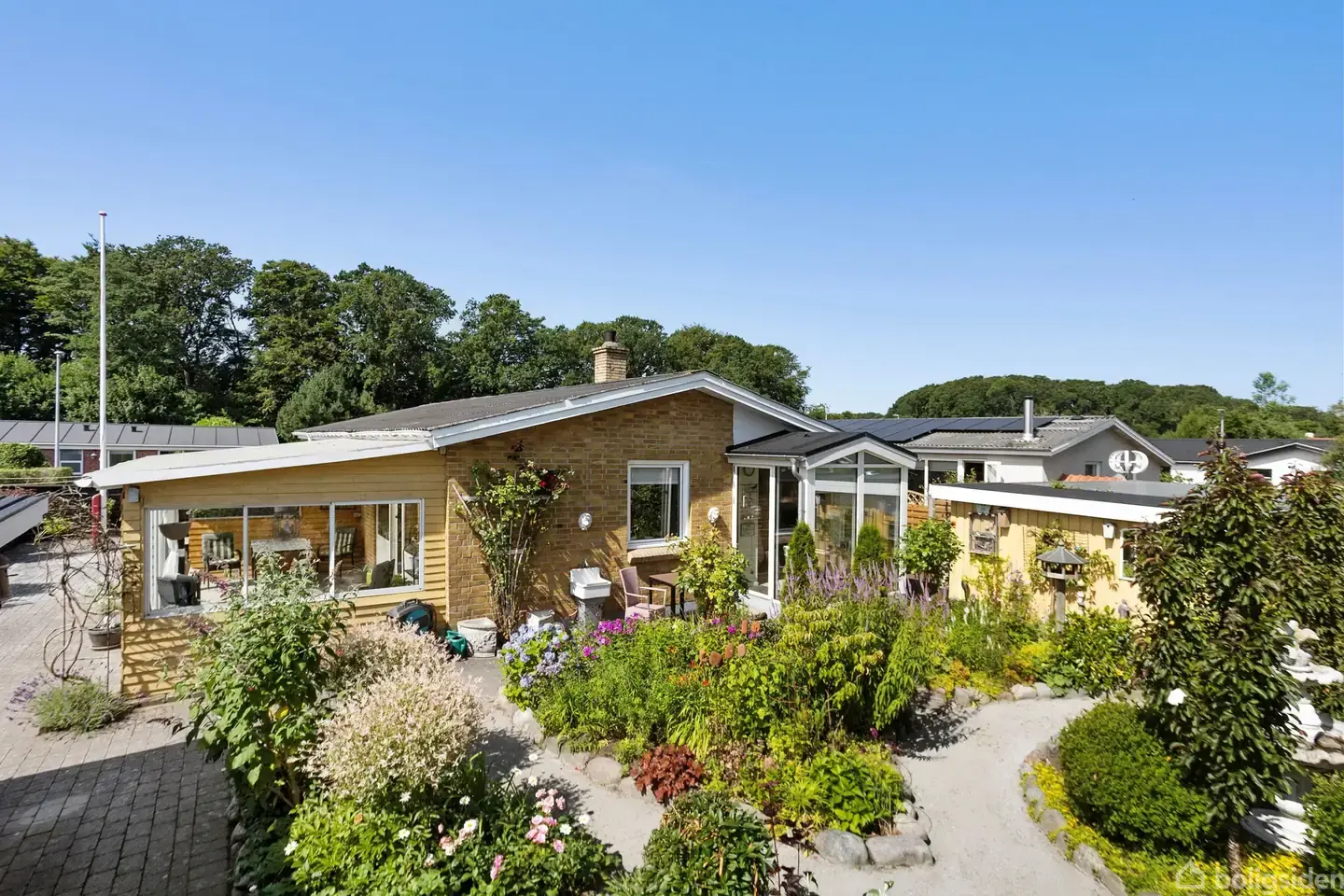 Åbent hus med tilmeldingskrav 8/2 - klik på billede - Velkommen til Nejsigvang 6 – en fredelig oase beliggende for enden af en stille, lukket villavej, hvor hverdagens tempo sænkes, og livet leves i harmoni med naturen. Her er rammerne sat for et trygt og børnevenligt hjem med masser af lys, luft og livskvalitet. Allerede når du træder udenfor, venter naturen bogstaveligt talt lige om hjørnet. Følger du stien blot 100 meter fra huset, åbner det gamle, romantiske haveanlæg Nellemanns Have sig op – efterfulgt af Sæbygård Skovs eventyrlige stier. Går du mod øst, venter Sæby Nordstrand – én af Danmarks mest børnevenlige badestrande – perfekt til både badeture og lange, afslappende gåture langs den stemningsfulde strandpromenade. Og selvom du bor midt i naturens ro, er du stadig kun 10 minutters gang fra Sæbys historiske bykerne, med specialbutikker, restauranter, skoler, dagligvarebutikker og den idylliske gamle vandmølle som kulisse for hverdagen. Samtidig er Aalborg kun 40 minutter væk, og Skagen kan nås på under en time. Boligen – lys, varme og velovervejede detaljer Huset er oprindeligt opført i 1964 og blev i 2002 udvidet, så det i dag rummer 130 veldisponerede kvadratmeter med bl.a. tre gode værelser. I 2018 gennemgik køkken-alrum og stue en komplet modernisering, hvor intet blev overladt til tilfældighederne: her er gulvvarme, ekstra isolering, flotte overflader og en nordøstvendt karnap, hvor morgenkaffen smager lidt bedre med kig til haven. Køkken og stue ligger i åben forbindelse, og det er tydeligt, at dette er hjemmets hjerte – et samlingspunkt med højloftet atmosfære, masser af dagslys og en stemningsfuld masseovn, der gør vinteraftener ekstra hyggelige. Herfra er der adgang til både en charmerende udestue og en solrig, sydvestvendt terrasse, hvor sommerens måltider nemt flytter udendørs. Planløsningen fuldendes af et stilrent badeværelse med gulvvarme, en entré og et praktisk vaskerum. Haven – blomstrende idyl og plads til leg Grunden på 697 kvadratmeter er smukt anlagt med blomstrende stauder, snoede stier, hyggelige kroge og en fin havepavillon, der indbyder til ro og fordybelse. Her er også god plads til leg og boldspil – eller måske et slag stigegolf med familien. Til ejendommen hører desuden en 29 m² carport samt et 28 m² udhus med værksted – perfekt til gør-det-selv-projekter og hverdagspraktik. Et hjem med sjæl, natur og nærhed – klar til næste kapitel Nejsigvang 6 er ikke blot en bolig – det er et hjem, der giver plads til både fællesskab og fordybelse. Her får du en sjældent harmonisk kombination af natur, bynærhed og velindrettede kvadratmeter i et område, hvor livets små glæder kommer i første række.