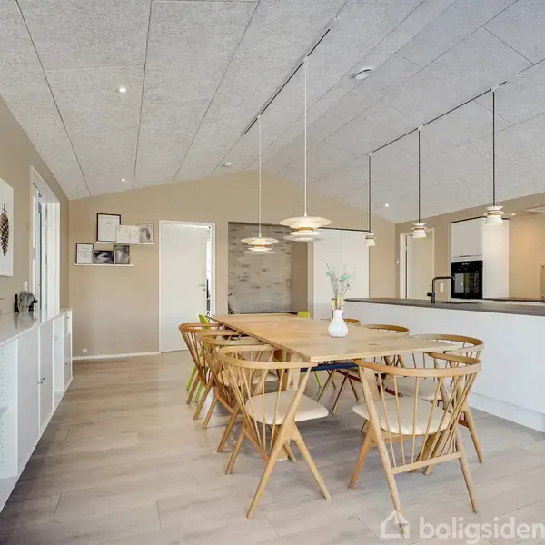 På Neptunvænget i Sønderris ligger denne indbydende etplansvilla fra 2023 – klar til at danne rammen om en nem og velfungerende hverdag. Her får I en gennemtænkt planløsning med masser af plads, skønne lysindfald og udeliv, der inviterer til både leg, afslapning og lange aftener på terrassen.Boligens naturlige samlingspunkt er det store køkken-alrum, hvor loft til kip og akustiklofter giver en behagelig rumfornemmelse, og hvor pendler over spisepladsen understreger den rolige, stilrene linje. Kø