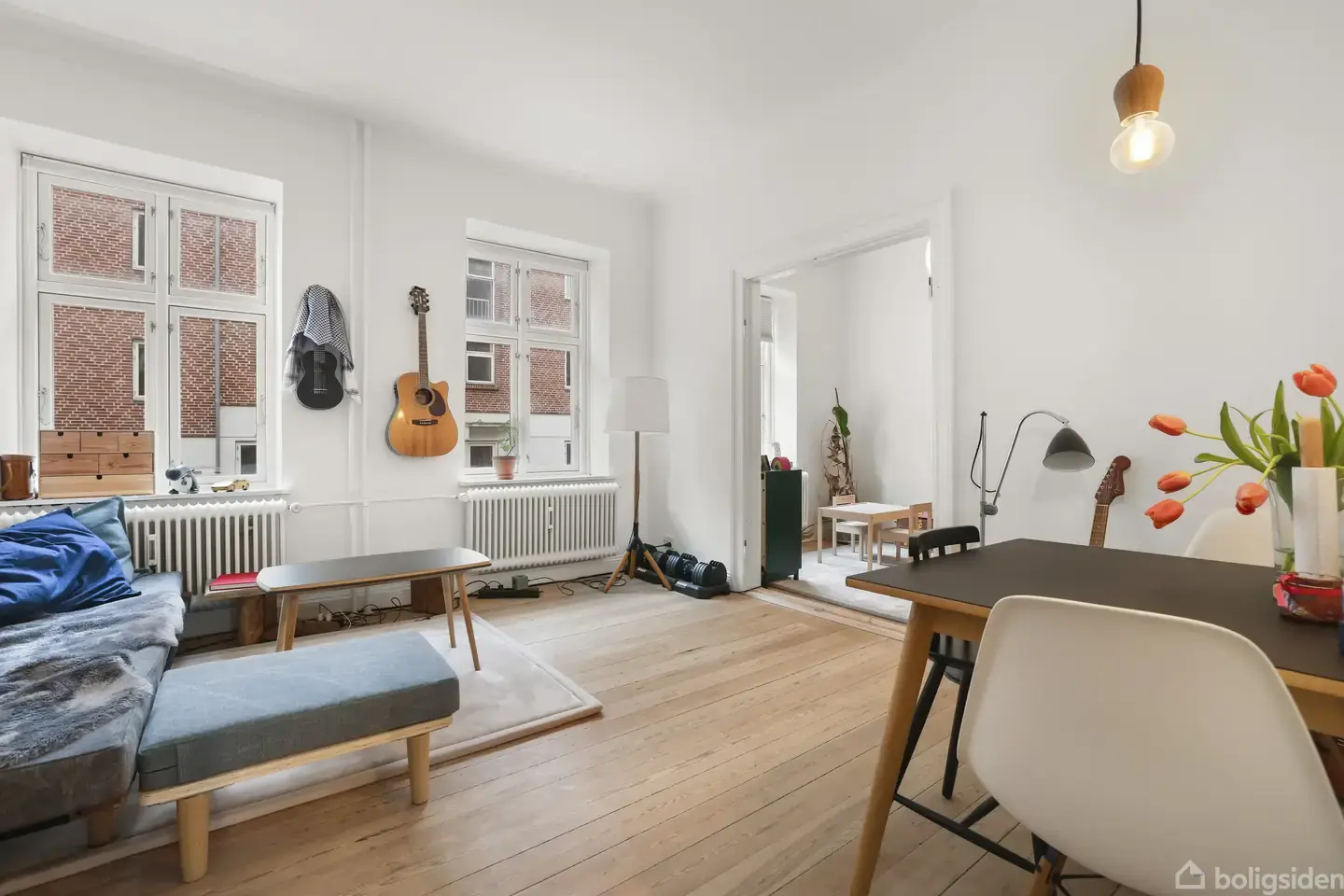Midt på charmerende Trøjborg finder du denne skønne lejlighed på Niels Juels Gade 16, st. tv. – en bolig, hvor historiske detaljer møder en moderne og indbydende indretning.Lejligheden er placeret i en klassisk, velholdt murstensejendom og byder på en gennemtænkt planløsning, som gør den velegnet til både singler, par og den lille familie. Allerede ved ankomsten fornemmer man boligens autentiske kvaliteter – de originale trægulve og den smukke stuk skaber en stemning af varme og karakter.Boligen
