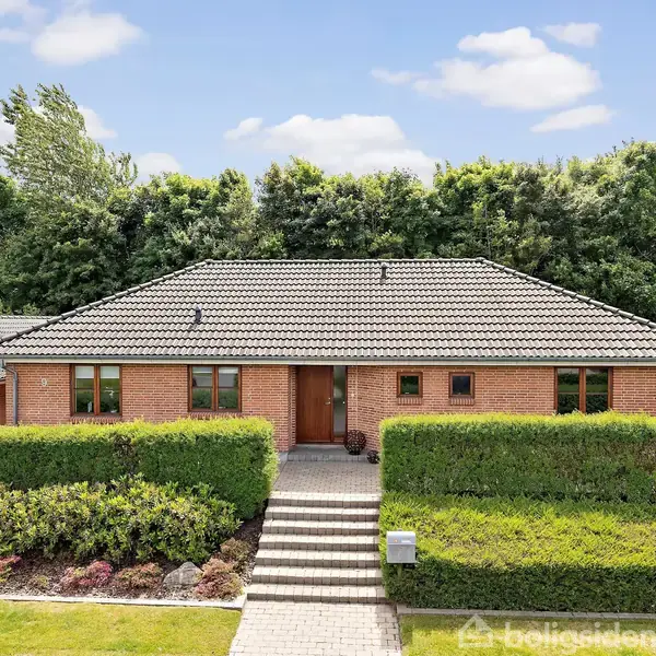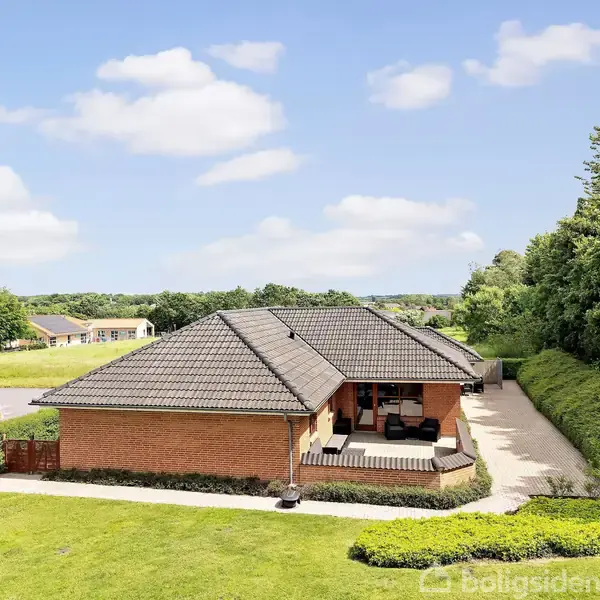 Åbent hus med tilmeldingskrav 7/2 - klik på billede - KLIK IND PÅ NYTTIGE LINKS OG SE DE SPÆNDENDE ATTRAKTIONER OG AKTIVITETER I LOKALOMRÅDET. SE MERE PÅ : OPLEVBROVST.DK Villa uden bopælspligt! Mulighed for helårs- og fritidsbolig Villaen har en virkelig god og attraktiv beliggenhed på en stille villavej i nyt villakvarter og med fin udsigt. Der er kort afstand til indkøbsmuligheder, skole, børnehave, idrætshal og kultur og medborgerhus. Skovsgård er en meget aktiv by med rigt kultur- og musikliv, et stort udbud af foreningstilbud samt en skøn beliggenhed tæt på dejlig natur og med kort afstand til Vesterhavet og Limfjorden. Fantastisk flot og velbygget vinkelvilla fra 2000 bygget i de bedste materialer og i god håndværkmæssig udførelse. Der er ialt 165 kvm. dejlig og velindrettet bolig samt 73 kvm. dejlig garage med værksted/hobbyrum med varmepumpe (luft til luft). Garagen er bygget i samme materialer som boligen og er isoleret og med el-hejseport.Villaen er grundmuret og med flot sort tagstenstag m/zinktagrender, eternitudhæng og stern samt maghoni vinduer og døre - alt sammen med til at gøre villaen næsten vedligeholdelsesfri. Invendigt har villaen et meget rustikt look med vandskurede vægge overalt, flotte klinke- og trægulve med gulvvarme samt ludbehandlede lofter overalt. Der er indlagt fiberforbindelse fra Norlys og der er opsat ladestander fra Clever. Boligen er indrettet med indgangsparti og seperat bryggers/vaskeafdeling med mange faste skabe og plads til vaskemaskine og tørretumbler. Stort dejligt køkken/alrum med godt lysindfald og halvmur til flot køkken med elementer i massiv ask og kirsebærkanter samt alt i hårde hvidevarer. Fra spiseafdeling nedgang til forsænket opholdsstue med trægulv og udgang til dejlig lukket ugenert terrasse mod sydvest. Stort lækkert badeværelse med flotte fliser på væg og gulv, stort badekar samt skabsarrangement med stor terrazzo-bordplade. Stort soveværelse med mange faste skabe og dejlig udsigt. 3 gode værelser med faste skabe og ekstra badeværelse med bruseniche.