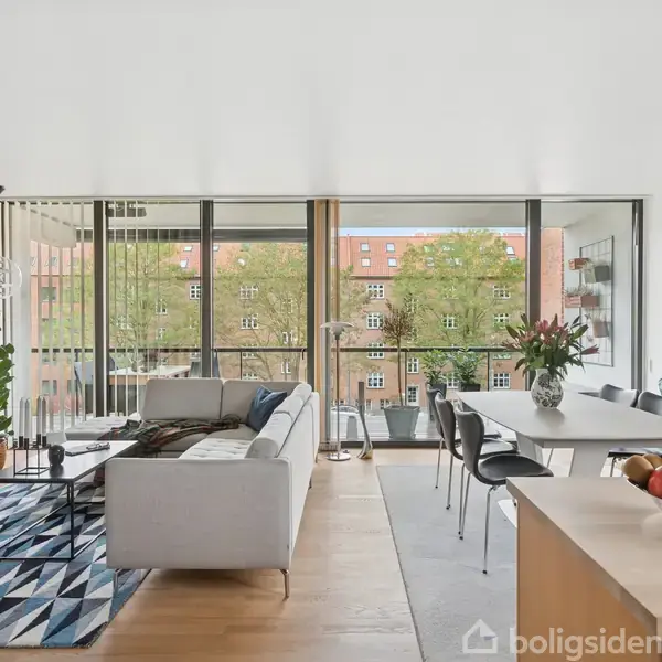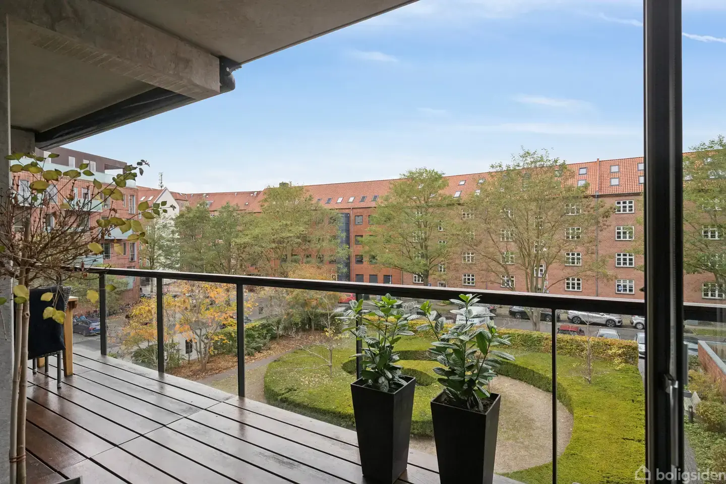 ALTANTERRASSE, PARKERINGSPLADS OG ELEVATOR 3 X tjek! På Frederiksberg. Så kan man vel næppe ønske sig mere. Og tilmed på en ret fin location i en arkitektonisk enklave. Hvis vi skal fremhæve lejlighedens helt store aktiv, så må det være den frie, grønne udsigt fra den nærmest luksuriøse altanterrasse. Lejligheden kan beskrives som et flow, hvor de gennemgående, lækre gulve binder rummene harmonisk sammen, og giver en følelse af sammenhæng og harmoni. Veltænkt forståelse for, hvad nutidens boli
