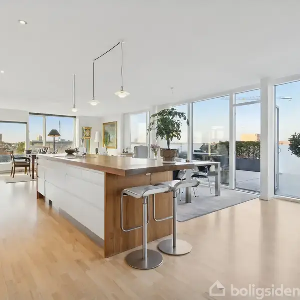 Stor penthouselejlighed med lækker tagterrasseDet er én af Hernings bedst placerede lejligheder, som nu står klar til nye ejere. Bliver det jer, kan I glæde jer til en stor, moderne bolig, der byder på formidabel udsigt over størstedelen af byen. Hjemmet har en ældrevenlig indretning, og boligarealet er generøst fordelt – herunder på to værelser, to badeværelser og et enormt opholdsrum. I får ovenikøbet egen altan og privat tagterrasse, og der medfølger et depotrum i byggeriets kælder. Ejendomme