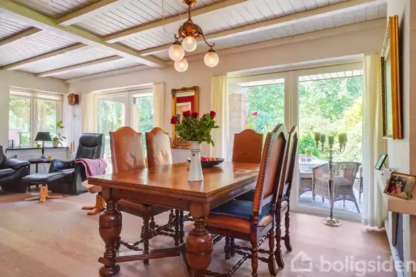 Denne rummelige og velholdte villa på Nøddevej 1, 7800 Skive er det perfekte hjem til den moderne børnefamilie. Med sine 247 m² bolig og en 26 m² integreret garage byder huset på masser af plads og en gennemtænkt indretning. Allerede ved ankomsten mødes man af en flot indkørsel med rondel, der smukt omkranser en imponerende blodbøg. Huset fremstår solidt med sine rødbrune teglstensfacader, brune betontagsten og energivenlige træ-alu vinduer. Indenfor venter et lyst og indbydende køkken-alrum med hyggelig spiseplads og direkte adgang til en sydvestvendt terrasse – perfekt til lange sommeraftener. Køkkenet har et klassisk udtryk med bejdset fyrretræ og en kogeø med elegant granitbordplade. Fra køkkenet er der adgang til et praktisk bryggers, der leder videre til baggangen med mulighed for åbning til den integrerede garage. Husets entré er rummelig og fordeler sig til værelsesafdelingen med to store værelser, et badeværelse samt et gæstetoilet. På førstesalen breder en stor, lys stue sig med udgang til svalegang og mulighed for at etablere ekstra værelser. Her findes også et rummeligt soveværelse med adgang til eget stort badeværelse, der byder på dobbeltvask, badekar og bruseniche. Udenfor venter en skøn, ugeneret have med velplejede rododendronbuske, store græsarealer og hyggelige terrassemiljøer, hvor familien kan nyde roen og solen dagen lang. Beliggenheden er ideel for børnefamilier med sikre stisystemer til skole, idrætshal og legepladser. Samtidig er der kort afstand til Skive Golfklubs smukke 18-hullers bane samt gode indkøbsmuligheder. En sjældent udbudt villa, hvor komfort, plads og beliggenhed går op i en højere enhed!