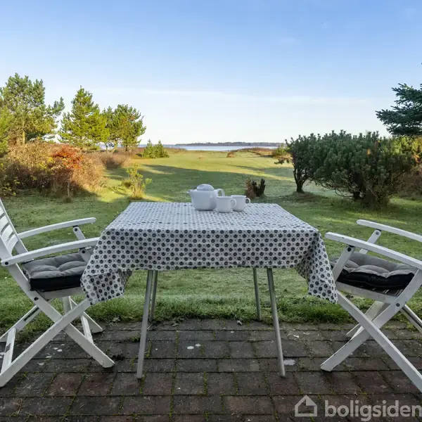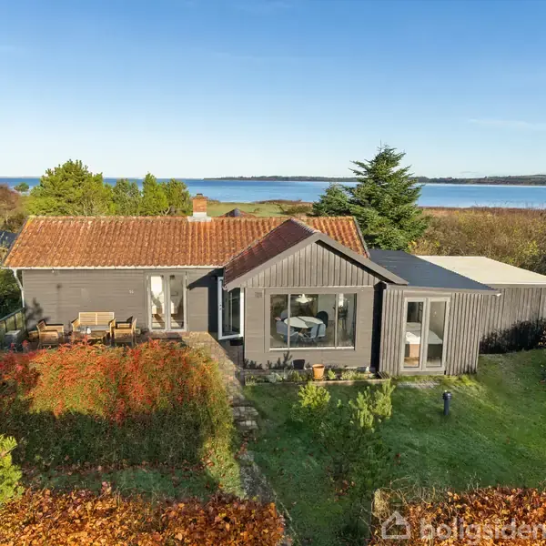 På Salling-halvøens nordlige kyst ligger dette fritidshus i fredelige omgivelser med panoramaudsigt over Limfjorden og adgang til vandet fra egen grund. Udover at placeringen er enestående, er ejendommen i sig selv attraktiv. I 2016 blev fritidshuset renoveret, hvor man styrkede forbindelsen til landskabet med en åben planløsning og store vinduespartier. Terrasserne omkring huset bidrager også til formålet, og de lange linjer mod Fur og Mors præger oplevelsen af både huset og stedet. Grunden græ