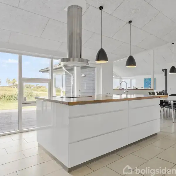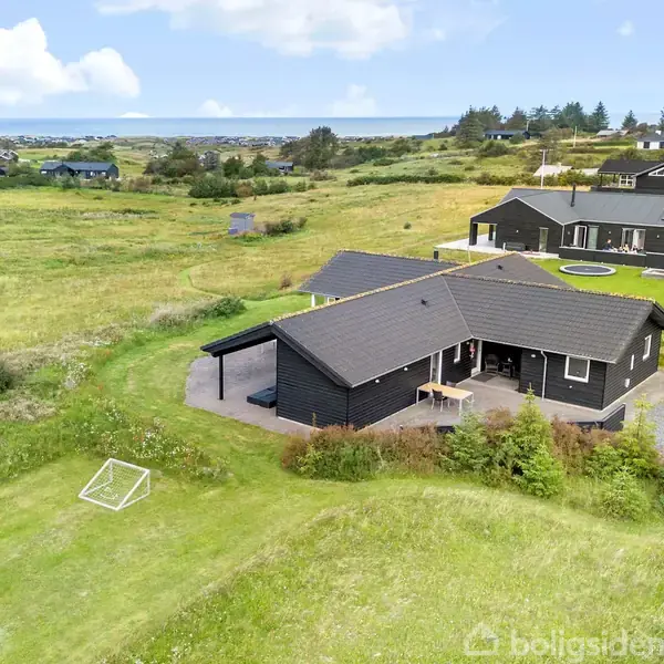 I en nyere udstykning nær Skallerup Klit, finder du dette lækre hus opført i 2012. Huset er lavet i de bedste materialer, hvilket du straks fornemmer, når du træder ind i huset. Husets overdækkede indgangsparti giver dig adgang til huset samt husets teknikrum/bryggers. Fra husets entre er der direkte adgang til det store køkken/alrum med loft til kip, som indeholder lækkert og lyst KVIK-køkken med stor kogeø med træbordplade. I forlængelse af køkkenet finder du spiseafdelingen, som gør det muligt at samle den store familie. Stuen indbyder til hygge og afslapning med familien og de store vinduespartier giver et flot lysindfald og et kig ud over den smukke kuperede natur og Vesterhavet. Her er der også mulighed for at sætte sig og læse en bog, mens brændeovnen spreder lidt ekstra hygge på de kolde aftener. Huset opvarmes i øvrigt af et stort jordvarmeanlæg, og der er gulvvarme i hele huset. Dette gør det muligt at varme huset op til fornuftige penge. Udover det store alrum har huset ligeledes 4 store værelser med skabe. Desuden er der et stort aktivitetsrum! Herfra er der adgang til husets hems. Endvidere to badeværelser i samme stil og med sandfarvede klinker, som i resten af huset. Det ene badeværelse er med spabad og sauna. Udenfor er der rig mulighed for at boltre sig på den store grund, hvor børn og voksne kan mødes i en fodboldkamp eller blot nyde solen på de store terrasser. Til huset er der et stort skur, hvor cykler, havemøbler mm. kan opbevares. Alt i alt et hus med store rum og højt til loftet - huset henvender sig til den pladskrævende familie eller til dem, som ønsker et sommerhus med et stort udlejningspotentiale.
