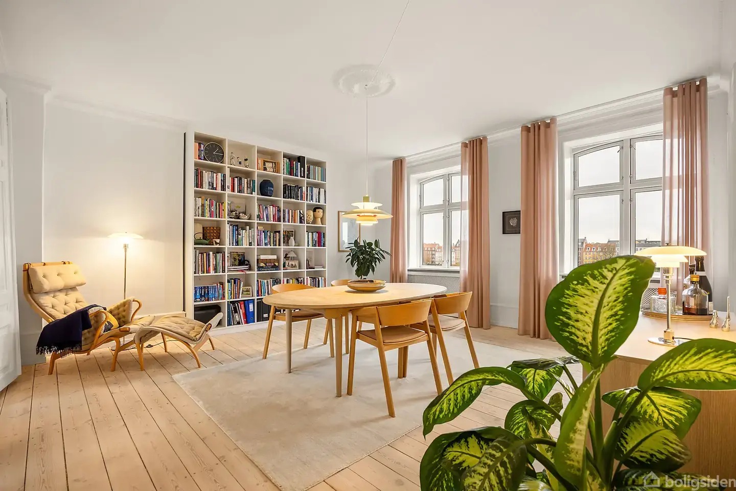Velkommen til denne betagende og klassiske københavnerlejlighed, hvor historie, æstetik og udsigt går op i en højere enhed. Her bor du direkte ud til Peblinge Sø – et af byens mest ikoniske og smukke steder – hvor årstidernes skiften spejler sig i vandet, og byens puls mærkes på nært hold. Fra vinduerne breder udsigten sig over søens overflade, de grønne alléer og det karakteristiske københavnske byliv. Allerede i opgangen fornemmer man ejendommens klassiske karakter med smukt bevarede detaljer,