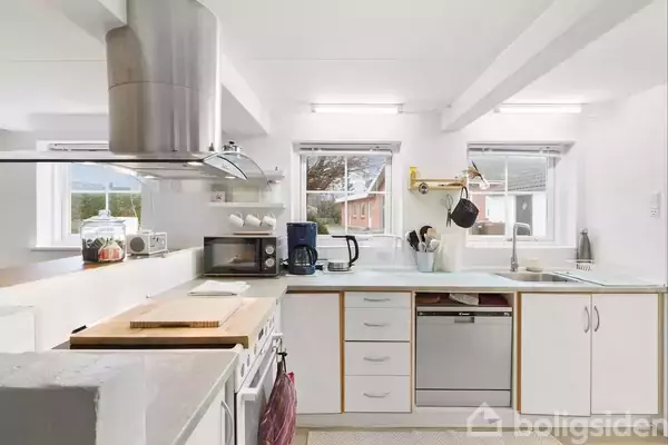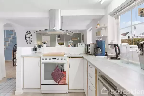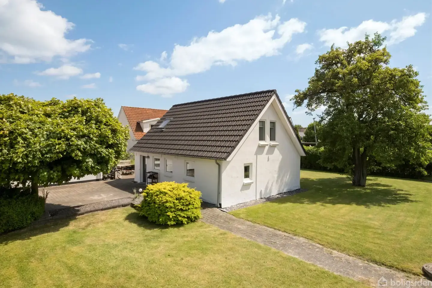 Åbent hus med tilmeldingskrav 28/2 - klik på billede - Klassisk og charmerende hus centralt i Hou – med stranden for enden af vejen Den sydvendte have fyldes med sol på hele plænen. Huset er navngivet ”Pære-huset” af nuværende ejer – netop på grund af det charmerende, gamle pæretræ, hvor der i sensommeren høstes de lækreste pærer. Boligen her er placeret centralt i Hou, som har en helt særlig feriestemning over sig – tæt på lækker badestrand, autentisk byliv og nærhed til et kæmpe sommerhusområde – og denne bolig har på trods af sin status som helårsbolig, en mulighed for at få flexbolig-tilladelse fra Aalborg Kommune (tilladelsen er person og skal ansøges om ved hvert ejerskifte). Huset er klassisk med sin hvide facade, sort tag i beton-tegl, fransk altan fra soveværelset og hyggelige terrasser. Fra den franske altan i husets gavl, kan man se ned til Kattegats blå bølger, som ligger for enden af vejen. Den fine og børnevenlige badestrand er utrolig populær i hele Nordjylland – og man er helt sikkert velkommen. Man kan se mere om aktiviteterne i nærområdet ved at se på www.houmole.dk . De charmerende elementer som synlige bjælker, den hyggelige karnap i stuen og det skrå loft på 1. sal skaber en hygge-stemning i huset. Der er en entré, badeværelse med bruseniche og gulvvarme, køkken med spiseplads, stue og værelse. På 1. sal er der indrettet et stort soveværelse samt toilet. Udhuset er delt i to – og indeholder i den ene del et grovkøkken/bryggers med vaskemaskine og i den anden del et u-isoleret udhus. Der er plads til bilen i indkørslen og terrassen, der bliver skabt mellem de to huse, er hyggelig og indbyder til grillhygge. Husk at vi fremviser ugens 7 dage – vi glæder os til at byde dig velkommen på Nørregade 12.