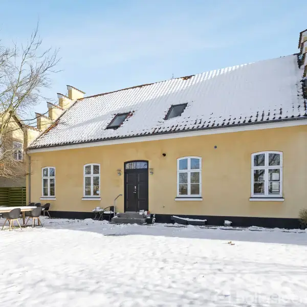 EJENDOM Denne smukke villa på 250 kvadratmeter er uden tvivl blandt områdets mest gennemførte ejendomme. Her mødes landlig charme og moderne komfort i en sjælden vellykket helhed. Huset, der oprindeligt er opført i 1858 og nænsomt totalrenoveret i 2016, fremstår i dag stilrent og indbydende med høje lofter, store vinduespartier og et fantastisk lysindfald. Med hele otte rum, heraf seks oplagte soveværelser, er her plads til både den store familie, hjemmekontor og individuelle interesser – alt sa