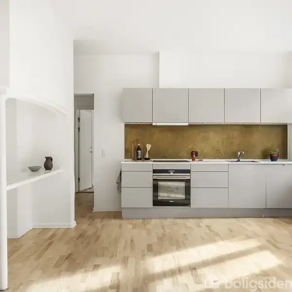 Rummelig ejerlejlighed 132 m², 4 værelser i rolig gård tæt på caféer I en klassisk ejendom fra 1818 ligger denne ejerlejlighed på 132 m² med 4 værelser og 1 badeværelse — en bolig der giver plads til både samvær og hverdagens praktiske rammer. Ved første skridt indfanges man af det lyse rumflow og de høje vinduer, som lader dagslyset strømme ind. Lejligheden ligger i en rolig gårdopbygning på en grund på 819 m², så du får byens puls og privatliv i samme paket. Planløsningen er gennemarbejdet me
