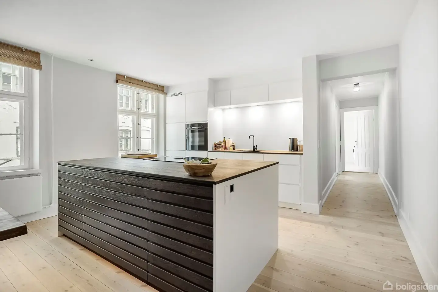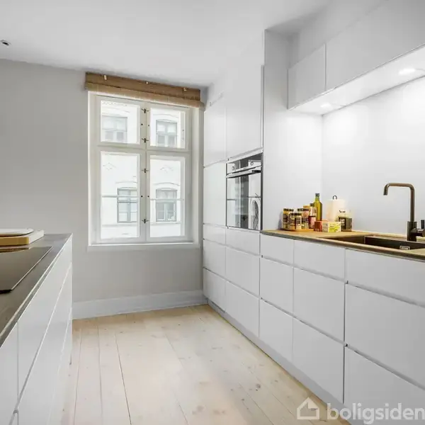 Åbent hus med tilmeldingskrav 8/2 - klik på billede - Grosserer og brygger Th. Charles Grut er kendt som den første, der fremstillede bayersk øl på flasker i Danmark. Han lagde grundstenen til denne ejendom i 1841. Ejendommen er i dag fredet, ligger midt i Odense C og præsenterer sig med tre længer, der omkranser et velbevaret fælles gårdmiljø, som oser af historie og fællesskab. Med adgang fra den gamle vognport bydes du velkommen via ejendommens prominente, runde trappetårn, hvor den gamle historiske bygning giver blod på tanden til at se mere. Inden vi træder ind i lejligheden, bør der lige knyttes en bemærkning til det unikke gårdmiljø, hvor der er borde og stole, og hvor solen kan nydes dagen lang i de unikke omgivelser. De historiske bygninger ligger helt inde i hjertet af byen. Der er i øvrigt også parkeringsmuligheder i gården efter først-til-mølle-princippet. Tilbage til lejligheden: Flot entré med plads til overtøjet og det uundværlige rum til støvsugeren og alt det andet praktiske. Fra entréen inviteres du ind i det skønneste køkkenalrum med god spiseplads og et rigtigt lækkert Kvik Køkken, hvor der er taget fra øverste hylde. Der er prioriteret en god, stor køkkenø, som gør rummet til mere end blot et køkken. Fra køkkenet er der åbnet op til opholdsstuen via en dobbelt glasdør, hvorfra der er en flot udsigt til kirken, Odense Slot og gaden. I stuen er der desuden et fint lille afsnit, hvor der kan etableres en ugenert arbejdsplads, hvis dette skulle være et behov. Bagerst i lejligheden findes et soveværelse med skabe og et stort badeværelse med vaskemaskine og plads til installation af tørretumbler, bruseniche og væghængt toilet. Fra gården er der også direkte udgang til offentlig parkering, og der er blot 150 meter til letbanen og parkeringskælderen under T.B.T. Der er 450 meter til Flakhaven, Odense Å og 350 meter til banegården. Beliggenheden bliver næppe mere central, på trods af de stille omgivelser i det skønne, lukkede og solrige gårdmiljø. Udover den fælles gårdhave er der fælles vaskerum og aflåst cykelrum.