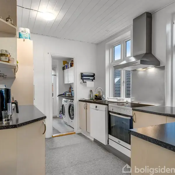 Denne ejendom fremstår som en velpasset og solid bygning med en god, central placering i Vejen. Den ligger tæt på byens øvrige butikker og daglige liv, så man er sikker på, at både erhverv og beboelse får glæde af den løbende aktivitet i området. Ejendommen giver et godt førstehåndsindtryk og har en størrelse og indretning, der gør den let at overskue både for lejere og kommende ejer.Stueetagen rummer et erhvervslejemål, som i dag er udlejet gennem en gældende erhvervslejekontrakt. Lokalerne kan