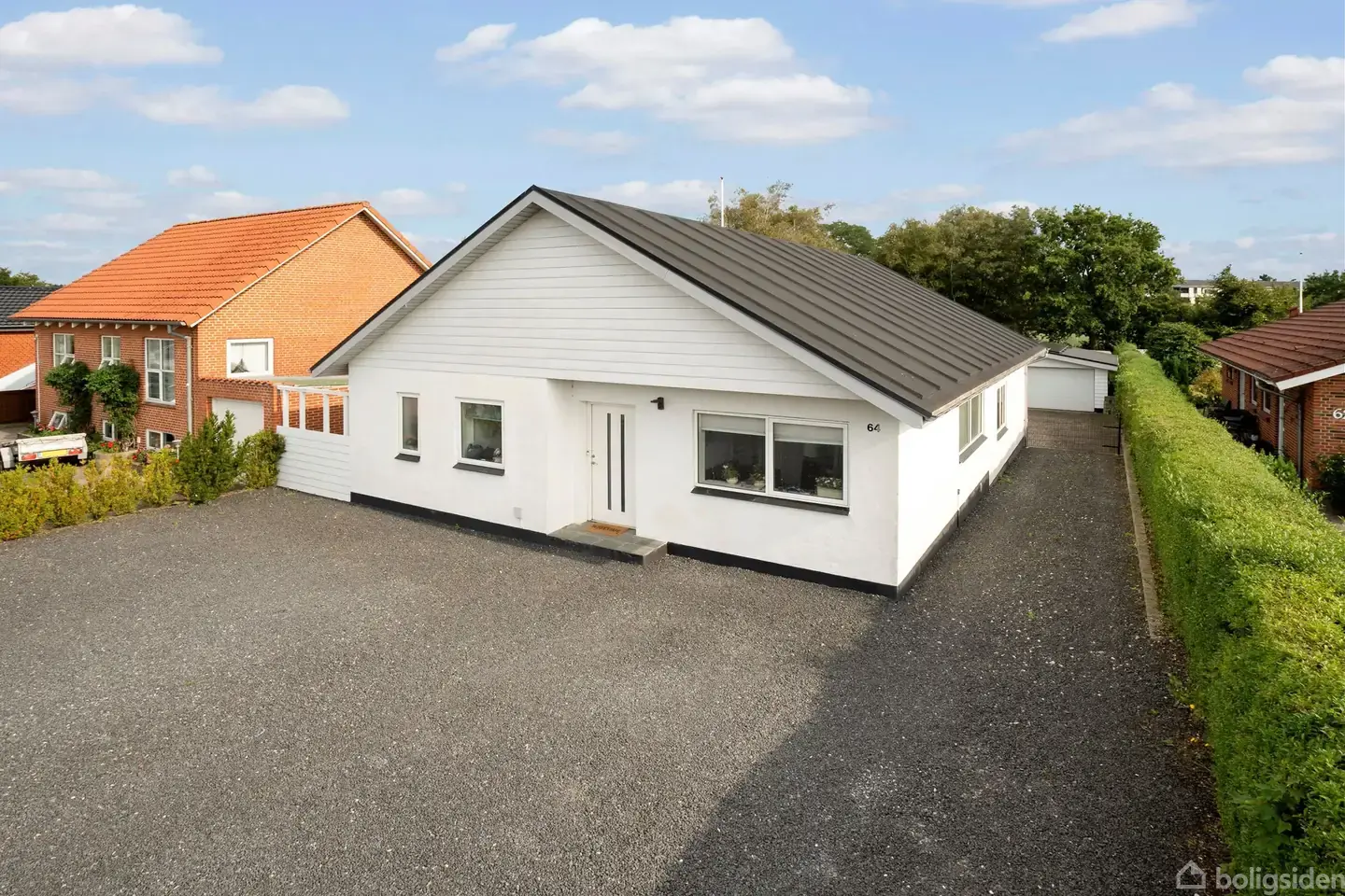 Åbent hus med tilmeldingskrav 19/2 - klik på billede - EDC har fornøjelsen af at byde dig hjerteligt velkommen til Nørrevænget 64 - en indflytningsklar villa med en særdeles central placering i Silkeborg. Her bor du med nem adgang til alle hverdagens fornødenheder, herunder skole, daginstitutioner, indkøb, offentlig transport og byens øvrige faciliteter. Nørrevænget er ideel for dig, der ønsker en praktisk og bekvem beliggenhed tæt på bylivet - uden at gå på kompromis med plads og komfort. Villaen er oprindeligt opført i 1959 og blev i 2014 udvidet med en gennemført tilbygning, hvilket giver et samlet boligareal på 140 m². Indenfor mødes du af en rummelig entré, som fordeler til to værelser og et badeværelse. Herfra træder du ind i et lyst og moderne køkken/alrum fra 2012, der giver god plads til samvær og madlavning. Soveværelset er placeret i en tilbagetrukket del af boligen og fungerer som en oplagt voksenafdeling med tilhørende badeværelse. Stuen er let sænket, hvilket skaber en hyggelig atmosfære med højt til loftet og et skønt lysindfald. Boligen er opdateret med troltexlofter, gulvvarme i hele huset og et Genvex-ventilationsanlæg, som sikrer et behageligt og sundt indeklima året rundt. I 2023 blev der installeret solceller med batteripakke, som bidrager til en energieffektiv og økonomisk bolig. Taget blev desuden udskiftet i forbindelse med tilbygningen og fremstår i god stand. Udendørs får du en dejlig, tilbagetrukket have med indkørsel langs huset, der fører ned til en stor og funktionel garage med tilhørende værksted. Fra haven er der direkte adgang til en sti, som leder videre til en nærliggende børnehave - en praktisk detalje i hverdagen. Lyder Nørrevænget 64 som noget for dig? Kontakt EDC i dag for en fremvisning - vi glæder os til at vise dig boligen! Når du køber en bolig gennem EDC, har du mulighed for at få en gratis flytteforsikring. Ønsker du denne, skal du sende en mail med "Ja tak" til [email protected]