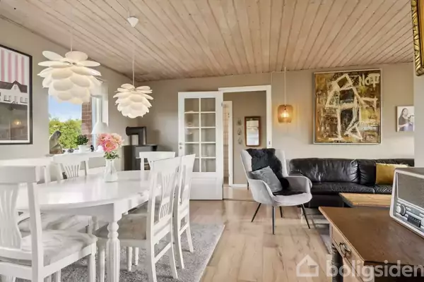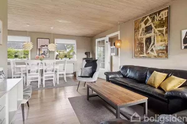 Lidt syd for Aalborg, i landsbyen Nøvling, finder I denne fine villa, der venter på at blive jeres nye hjem. Huset er et godt førstegangskøb, da det er lige til at flytte ind i. Dertil rummer det 90 velindrettede m2 med masser af plads til familiesamvær og en skøn have, der giver en fortrinlig ramme om hverdagen. Velkommen til Nøvlingparken 1. Ejendommen er opført i 1984 og præsenterer sig yderst velholdt og nydelig. Dertil tilbyder villaen mange muligheder for at sætte jeres eget præg. Det positive indtryk fortsætter inden døre, hvor et rummeligt og lyst opholdsmiljø udfolder sig. Rummet består af et stilrent køkken i åben forbindelse med en vinkelstue, hvor et herligt dagslys strømmer ind fra brede vinduer. Den indretningsvenlige stue giver plads til både sofagruppe og spisebord, hvor brændeovnen sørger for en hyggelig stemning i rummet. I kan desuden se frem til et dejligt soveværelse med indbygget skab samt yderligere to værelser, der egner sig glimrende som børneværelser eller arbejdsværelse. Dertil får I også et nyere og flot badeværelse med en bruseniche samt et praktisk bryggers med egen indgang og vaskefaciliteter. Udenfor kan I glæde jer til en stor, hyggelig have med flere solrige terrasser. Heraf en med skøn overdækket terrasse. Herude får I en skøn oase til de lune sommerdage, hvor I ganske uforstyrret kan nyde solen hele dagen. Grunden på 842 m2 rummer også en garage samt et skur med opbevaringsmuligheder. Endvidere hyggeligt drivhus/orangeri. Der ligger fælles areal / legeplads, som hører med til grundejerforeningen. Sælger har efterfølgende udskiftet tagplader. I Nøvling kan I se frem til et aktivt foreningsliv. Daginstitution og skole er blot en tre minutters cykeltur væk, mens indkøb kan klares i Gistrup, hvor gode stisystemer fører jer sikkert på vej på under et kvarter. I nærheden har I også flere smukke naturområder såsom Lundby Bakker, og så er der kun 15 minutters køretur ind til Aalborg. Book en fremvisning i dag på tlf. 6115 1513