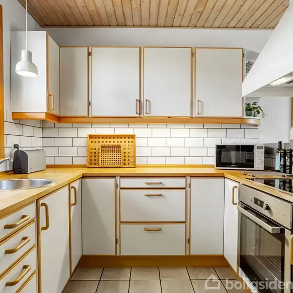 Velbeliggende og velholdt 156 kvm. vinkelbygget rødstensvilla med 48 kvm. carport, cykelrum, værkstedsrum og redskabsrum. Beliggende på en 750 kvm. stor grund med stor flisebelagt indkørsel, sydvestvendt delvis overdækket terrasse og helt lukket have der grænser mod ubebygget friareal. Villaen, der er opført i 1987, har tegltag, termovinduer, efterisoleret på loft, fyldningsdøre, overvejende gulvvarme i klinkegulve og opvarmes ved fjernvarme og brændeovn i stuen. Indeholder: bryggers/grovkøkken med klinkegulv, køkken/alrum med klinkegulv, udgang til terrasse og fransk dør til spise- og opholdsstue hvor der er brændeovn og udgang til terrasse, soveværelse med faste skabe og separat badeværelse med bruseniche, klinkegulv og fliser til loft, værelse/kontor med faste skabe, entré. Endvidere er der soveafdeling med: 2 gode værelser med faste skabe og badeværelse med bruseniche, kinkegulv og fliser til loft.