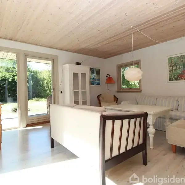 Stor, gedigen og helårsanvendelig fritidsboligI det naturskønne Udsholt Strand ligger denne store og helårsanvendelige fritidsbolig. Huset har et indbydende interiør med hvidtonede trælofter, hvidmalede vægge og lyse gulve. I hele ejendommen er der desuden gulvvarme. Huset er yderst velindrettet, og med de fire soveværelser og to badeværelser er der god plads til den store familie. Den lyse stue og spisestue samt det pæne, åbne køkken danner et naturligt samlingspunkt i huset, hvorfra der er fle
