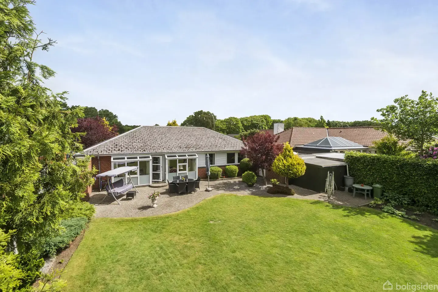 Velholdt og velbeliggende 1. plans villa. Med den skønneste have og udsigt udbydes nu en dejlig villa i 1.- plan som fremstår velholdt og i god stand. Her er tale om en villa på 120 gode kvadratmeter som i en kombinationen med garage. udhus og have opfylder mange parametre for et super godt hjem. Et hjem der er beliggende bynært, og ligeså har du naturen tæt på din egen hoveddør. Indvendigt:Fin entré med god pladsBryggers med plads til vaskemaskine og tørretumblerFint køkken i flot stil med udsi