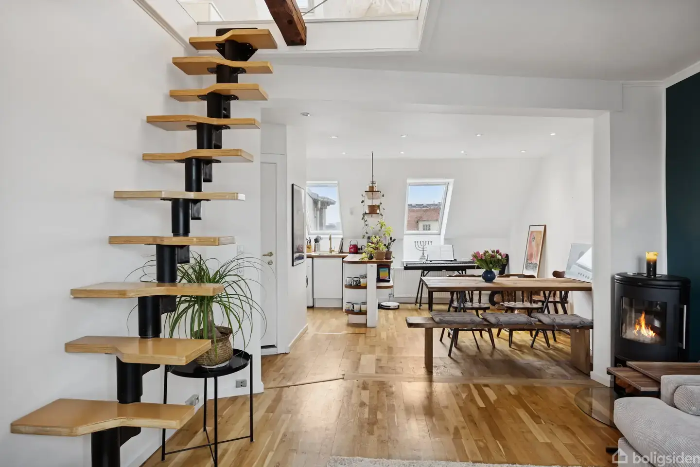 Velkommen til en lejlighed, der oser af god stemning. Du får hjemme i en klassisk murstensejendom, og det er de to øverste etager, som bliver dine; hvilket betyder ingen overboer og masser af lys. Derudover byder boligen på mange charmerende indretningsdetaljer – og egen brændeovn. Det hele i gåafstand til Aksel Møllers Have og i kort cykelafstand til alt det, der gør Frederiksberg så dejlig. Lejlighedens kvadratmeter er usædvanlig godt udnyttet, hvilket gør boligen velegnet for både solisten o