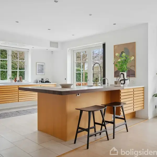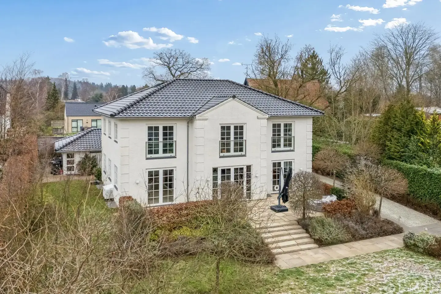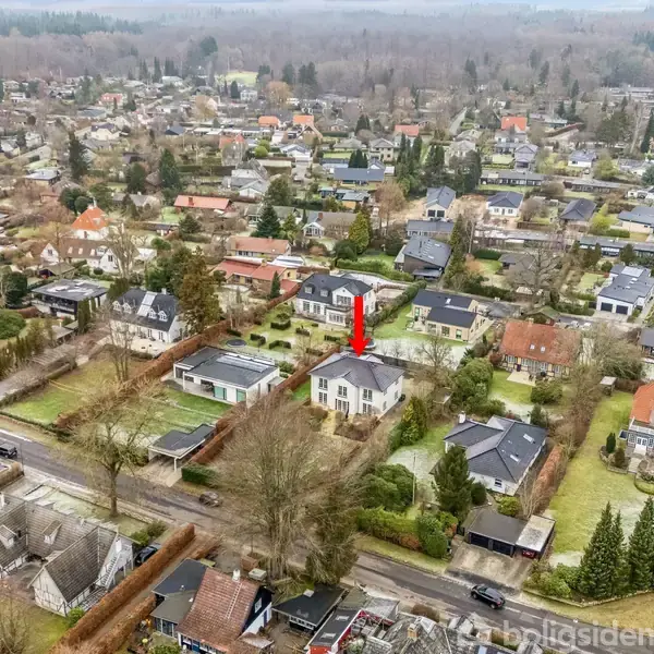 En gnidningsfri boligoplevelse krydret med ubetinget hverdagsluksus gemmer sig mellem de imponerende ydermure. Lyset tænder automatisk, når hoveddøren åbnes, og fra din smartphone kan du styre det integrerede Sonos-system, der går på tværs af næsten alle rum. Måske fortsætter du ned i vinkælderen, før turen går igennem alrummet og ud af fløjdørene på terrassen – og når du sidder herude i aftensolen med et koldt glas Chablis i hånden, kan du næsten ikke undgå at tænke: “I made it”! Også beliggenheden signalerer overskud. Huset hører nemlig hjemme i et attraktivt kvarter med overskuelig gåafstand til Holtes mange restauranter og blomstrende handelsliv, mens der er endnu kortere til et hav af daginstitutioner og velrenommerede skoler. Et ressourcestærkt og aktivt lokalfællesskab står også til rådighed, og weekenderne kan gå med alt fra loppemarkeder til fastelavnsfester rundt omkring i de mange nærliggende parker og grønne pletter. Den prægtige palævilla blev opført i et udførligt samarbejde mellem sælger og Lind & Risørs arkitekter, og siden da er rammerne vedligeholdt til punkt og prikke. Kun det bedste har været godt nok, og hvor yderligere specialkompetencer kunne gavne, er de blevet bragt ind. Eksempelvis er det smukke trappeløb designet af Trappekompagniet, ligesom inventar fra uno form i både køkken, walk-through og på samtlige badeværelser binder en eksklusiv sløjfe på hjemmets æstetik. Huset er desuden energioptimeret efter moderne standarder med blandt andet gulvvarme, fibernet og intelligente løsninger, der styres centralt. Placeringen på matriklen er nænsomt udvalgt: tilbagetrukket fra vejen, højt beliggende og orienteret perfekt mod solens bane. Terrassen er udformet i flotte naturfliser, der giver et sydlandsk præg, og de varmes af solens stråler, helt til den går ned. Resten af haven er udlagt i blød, jævn græsplæne – på nær indkørslen, der er anlagt som en allé og fører hele vejen op til en vendeplads med carport og plads til flere biler. Selve indretningen er skræddersyet til familielivet, helt fra børnene er små og vil bo tæt på mor og far, til de ønsker deres egen teenageafdeling. Som forælder skal du dog heller ikke gå på kompromis, for der er skabt en nærmest hotel-lignende mastersuite med karbadeværelse og walk-through. Herudover byder førstesalen på yderligere tre indretningsvenlige værelser samt endnu et badeværelse, og rettes blikket mod kælderen, venter et tredje badeværelse, et praktisk vaskerum og flere disponible rum i boligstandard. Det eksklusive køkken-alrum i stueplan skaber et samlingspunkt for livets store og små øjeblikke med en stor gaspejs som samlingspunkt mellem rummets sektioner. Gennem hallen er der sømløs forbindelse til både gæstetoilet og en oplagt lounge i kælderen, hvor en biopejs sætter stemningen an, mens det store vinrum nok er hovedårsagen til at rykke festerne nedenunder. Ja, det er ingen hemmelighed, at hjemmet oplagt er for dig, der elsker vin, for med inventar bygget af VintageKeeping og et helt nyt klimaanlæg får dine flasker næsten lige så gode vilkår som dine børn. Alt i alt en bolig, der kombinerer fremtidens løsninger med en æstetik inspireret af 1920’ernes grandiositet.