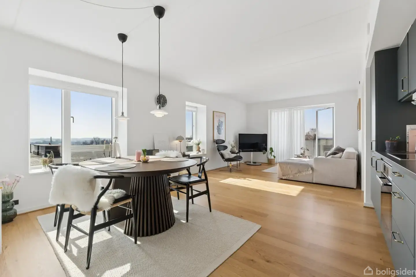 Denne attraktive ejerlejlighed er beliggende hvor den tidligere Nordre Skole lå, som i 2021 blev ombygget til moderne og indbydende ejerlejligheder. Lejligheden ligger på 4. sal og yderst i bygningen, hvilket giver en helt særlig ro samt en imponerende udsigt over byen. Fra lejligheden kan man nyde udsigten over hustagene – og man kan endda se helt til Vindeby.Boligen henvender sig til dig, der ønsker en vedligeholdelsesfri bolig, hvor der er tænkt på både komfort og funktionalitet. I opgangen f