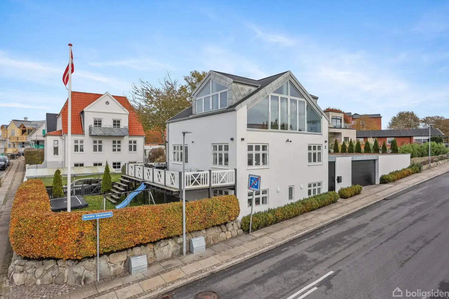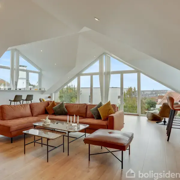 Velkommen til Nordre Skansevej 2 – en villa i særklasse med en af de mest betagende beliggenheder i Nørresundby. Her bor du på toppen af Skansen i et attraktivt kvarter, hvor du kan nyde en panoramaudsigt, der ganske enkelt skal opleves. Fra ejendommens høje placering og hjørnegrund får du en uforstyrret udsigt fra Limfjordsbroen og videre ud over fjorden mod Egholm, Nibe, Sebbersund og lufthavnen. Samtidig bor du tæt på hverdagens fornødenheder – både skole, daginstitutioner og indkøbsmulighede