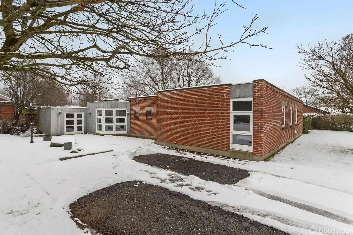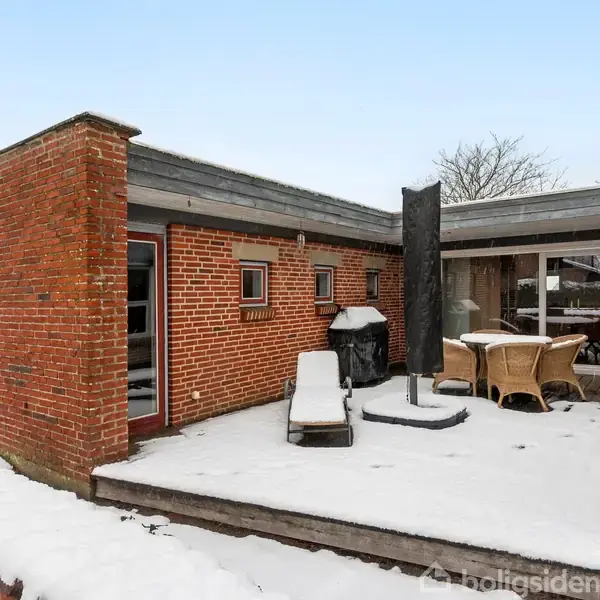 Nordvangen 41 i Vonge byder på en moderne og familieorienteret bolig i den populære funkisstil, placeret på en stille villavej i et attraktivt og trygt lokalmiljø. Huset er opført i 1980, men fremstår i dag opdateret og velholdt med en gennemtænkt indretning, hvor funktionalitet og komfort går hånd i hånd. Planløsningen er særligt velegnet til børnefamilier, da værelsesafdelingen ligger samlet i den ene fløj. Her finder man et lyst forældresoveværelse, tre gode børneværelser og et badeværelse, som sammen danner en rolig og afskærmet privat del af huset. Fra gangen er der direkte adgang til værelserne, hvilket skaber en naturlig sammenhæng og nem hverdagslogistik. Boligens centrale samlingspunkt er det store og indbydende køkken-alrum, der ligger i åben forbindelse med opholdsstuen. Her er der plads til både madlavning, fælles måltider og hyggelige stunder med familien, og de store vinduespartier inviterer lyset ind og skaber en behagelig atmosfære gennem hele dagen. I forlængelse af opholdsområdet finder man en entré med god plads, et gæstetoilet. Derudover rummer boligen et alsidigt hobbyrum, som kan anvendes til værksted, kreativt rum, eller endda et mindre liberalt erhverv hvor man har egen indgang. Derudover har man et praktisk bryggers med direkte indgang, hvilket gør det let at håndtere hverdagens praktiske opgaver Udenfor venter en privat og ugeneret terrasse, placeret smukt mellem husets tre længer og med direkte adgang fra køkken-alrummet. Terrassen fungerer som en naturlig forlængelse af hjemmet og er perfekt til både afslappende eftermiddage og hyggelige grillmiddage. En del af terrassen er overdækket, så udelivet kan nydes i al slags vejr. Den omkringliggende have er enkelt anlagt og nem at holde, så man får en grøn ramme omkring huset uden et stort vedligeholdelseskrav. Beliggenheden i Vonge gør hverdagen enkel og overskuelig. Landsbyen er kendt for sit stærke fællesskab og byder på både skole, indkøbsmuligheder, idrætsfaciliteter og et aktivt foreningsliv. Her bor man tæt på naturen og samtidig i kort afstand til motorvejen, hvilket giver hurtig adgang til Vejle, Billund, Kolding, Horsens, Herning og Aarhus. For børnefamilier er dette en oplagt placering, hvor man har alt, hvad man skal bruge, inden for overskuelig rækkevidde. Nordvangen 41 er derfor et ideelt hjem for jer, der søger moderne rammer, en praktisk planløsning og et uderum, der indbyder til ro og nærvær – alt sammen i et attraktivt og imødekommende lokalmiljø.