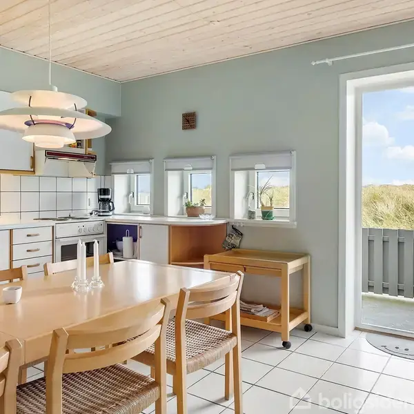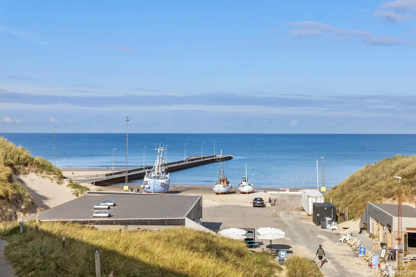 Velkommen til Strandpavillonen – en af Løkkens mest ikoniske ejendomme, beliggende i hjertet af byen og kun 150 meter fra det brusende Vesterhav. Her udbydes nu lejlighed nr. 9 – en sjælden mulighed for at erhverve en rummelig og velindrettet lejlighed i to plan, med spektakulær udsigt i flere retninger. Lejligheden er opført i 1987 som en del af den velkendte Strandpavillon, der rummer i alt 20 boliger. Lejligheden fordeler sig over 86 m² og byder på både privat terrasse og en imponerende, hjørnevendt altan – perfekt til at nyde solnedgangen, lyset over havet og den friske havluft. Indretning – stueplan: Entré og fordelingsgang. Dejligt spisekøkken med god spiseplads og udgang til nordvestvendt terrasse med udsigt over klitlandskabet og mod stranden. Soveværelse med plads til to senge. Pænt badeværelse med bruseniche. Trappe til 1. sal der indeholder: Stor, lys udsigtsstue med udgang til den store altan, der går hen over hjørnet af ejendommen – her får du nogle af Løkkens bedste kig til hav, strand og by. Stort soveværelse med masser af lys og luft Fra altanen og stuen er der fantastisk udsigt til både Vesterhavet, stranden, molen, det karakteristiske vandtårn og byens tage – samt i det fjerne det ikoniske Rubjerg Knude Fyr, som majestætisk troner i horisonten. Lejligheden er ideel som feriebolig, men kan også fungere som en eksklusiv helårsbase ved kysten. Her bor du i gåafstand til byens restauranter, butikker og ikke mindst den brede, hvide sandstrand, der gør Løkken til en af Danmarks mest eftertragtede feriebyer.