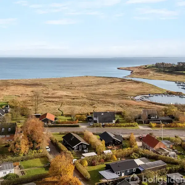 Med direkte adgang til den fineste, børnevenlige sandstrand og med fri udsigt til Aarhusbugten, Helgenæs og Samsø. Endvidere kan man fra ejendommen skue ud over den smukkeste fredede strandeng med indsejlingen til Norsminde Havn og livlig bådtrafik, især i sommerhalvåret. Man kan også fra ejendommen betragte havnens stemningsfyldte miljø, og har man lyst til at gå derhen, tager det ca. 5 min. Havnens restauranter, Fiskehuset og Norsminde Kro, er kendte og velbesøgte spisesteder.Huset ligger ugen