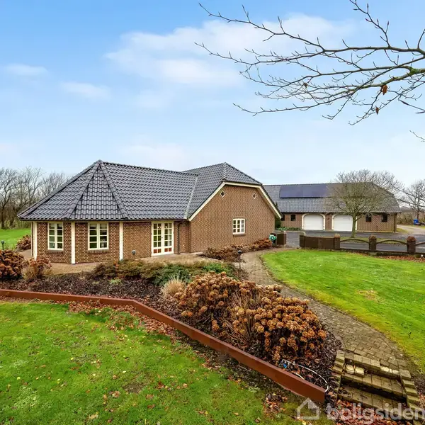 Så er denne smukke og moderne ejendom, perfekt placeret helt for sig selv og tilbagetrukket fra Nr. Lydumvej, et oplagt valg. Her får du en indflytningsklar bolig fra 2004, hvor alt fremstår velholdt og lige til at tage i brug. Når du ankommer, bliver du mødt af en præsentabel indkørsel, en stor og praktisk garage med elektroniske porte, carport samt et rummeligt, integreret udhus med masser af opbevaringsplads. Ejendommen er både funktionel og gennemført – lige fra de flotte udearealer til de 242m² velindrettede boligkvartmeter. Boligen er udstyret med gulvvarme i hele beboelsesdelen, som opvarmes af et stokerfyr, og på taget er der solceller. Beliggenheden er helt ideel. Fra Nr. Lydumvej er der bare 8–10 minutters kørsel til Nr. Nebel med indkøb, skole, daginstitutioner og alle hverdagens faciliteter. Indenfor byder huset velkommen med et stort, flisebelagt bryggers med god skabs- og bordplads og plads til både vaskemaskine og tørretumbler. Det velindrettede køkken ligger i åben forbindelse med spiseafdelingen, og herfra er der gennem de franske døre adgang til opholdsstuen. Store vinduespartier inviterer naturen indenfor og giver en smuk udsigt over haven og de omkringliggende marker. Boligen rummer hele fem værelser – perfekt til den store familie eller til dig, der ønsker kontor, gæsteværelse eller hobbyrum. Hertil kommer to flotte badeværelser, begge med fliser og det ene med spabad. Rolige omgivelser, masser af plads, moderne komfort og minimal vedligeholdelse. Et perfekt valg for dig, der vil bo på landet uden at gå på kompromis med kvalitet og bekvemmelighed. Kontakt os for fremvisning.