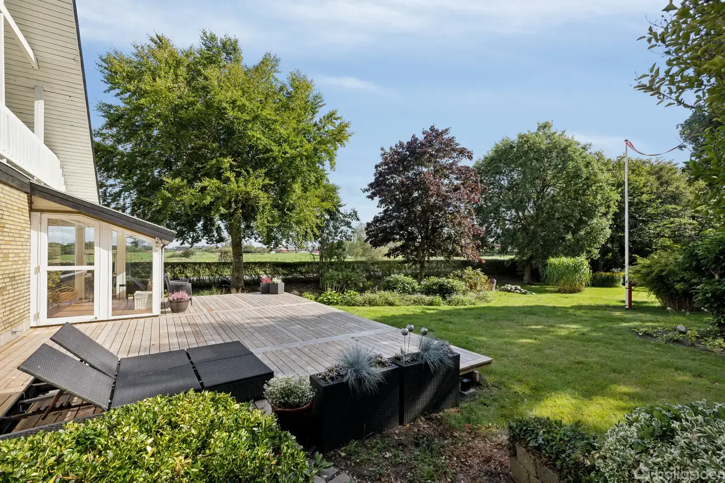 Plads til de store armbevægelser på grænsen mellem by og land Æslerne skryder, fuglene kvidrer, og træerne åbner op til smukke udsigter over det frodige marklandskab. Idyllen er, med andre ord, i top – og det på trods af, at I får hjemme lige inden for bygrænsen. Her finder den store børnefamilie sig nemt til rette på hele 212 m2 bolig og 3.004 m2 solrig grund. ‘Plads’ må siges at være et nøgleord, hvad end I opholder jer ude eller inde. Først kommer matriklens hæk, træer og dobbelte garage je