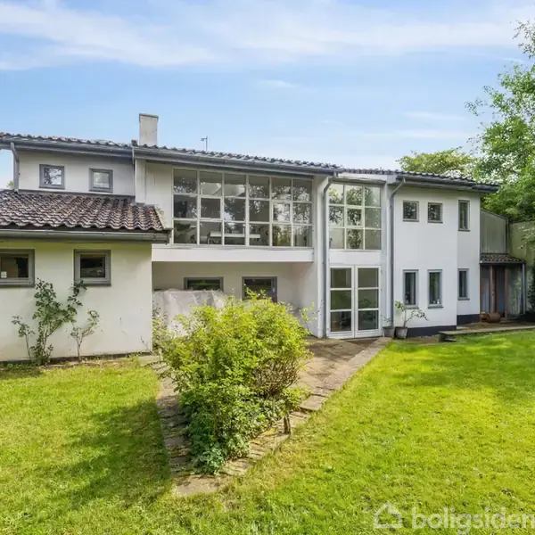 Stor, nyere villa i Espergærde, med mange kvadratmeter, beliggende tæt på "skolestranden", Øresund, Gammel Strandvejskvarteret og Espergærde Havn. Ligeledes tæt til Espergærde Skolen og daginstitutioner. Huset har spændende arkitektur, med et indgangsparti og mellemgang, med store ovenlysvinduespartier og fordeling til ejendommens mange rum og afdelinger. Ejendommen kan rumme den store familie, i flere generationer og samtidig med plads til liberalt erhverv, træningsrum, værksted - kun fantasien sætter grænserne. Boligarealet er på 230 kvm og dertil skal ligges 90 kvm brugbar kælder og 45 kvm indbygget garage. Indeholder: Indgang til den store brede mellemgang, med ovenlys og fordeling til ejendommens mange afdelinger og rum. Indgang til stort køkken/alrum, ligeledes med ovenlys g udgang til terrasseområdet. Her er sat en væg op, som kan tages ned igen, så der er kommet en afdeling med to værelser en-suite med ovenlys. På den anden side af gangen stort badeværelse med ovenlys. Der ud over stor indbygget garage på 45 kvm og stort disponibelt rum. Underetagen er indrettet med 4 brugbare depotrum i forskellige størrelser. To store værelser med hvert deres badeværelse, det ene pt. indrettet til yoga og træningsrum. Endvidere stort vaskerum. Grunden er en stor hjørnegrund på 1.138 kvm med mange træer og buske. Foran ejendommen er der et hyggeligt gårdhavemiljø, med flere terrasser, sol- og lækroge. Endvidere gode parkeringsforhold.
