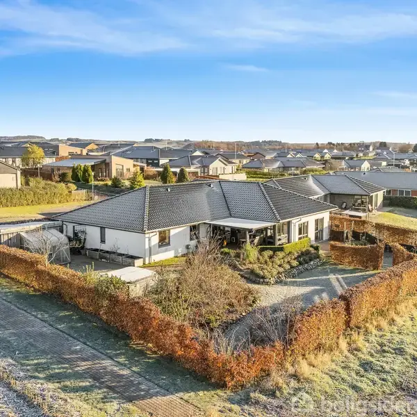 Drømmer I om en rummelig og funktionel bolig med plads til hele familien? Så skal I se nærmere på denne dejlige villa i ét plan, som byder på hele 195 m² bolig og 6 gode værelser – perfekt til den store børnefamilie eller jer, der ønsker ekstra plads til hjemmekontor, gæsteværelser eller hobbyrum.Udenfor får I en carport på 34 m² med plads til to biler samt en hyggelig og indbydende have med overdækket terrasse og udestue med udsigt udover byen og marker – ideel til hyggelige sommeraftener med g