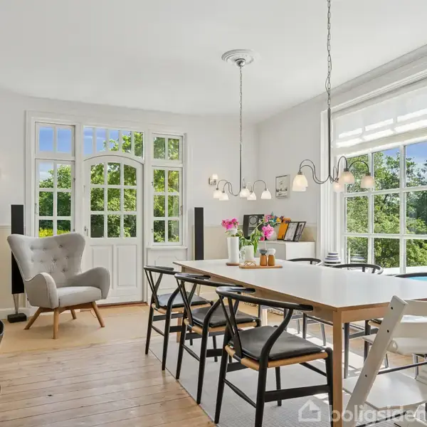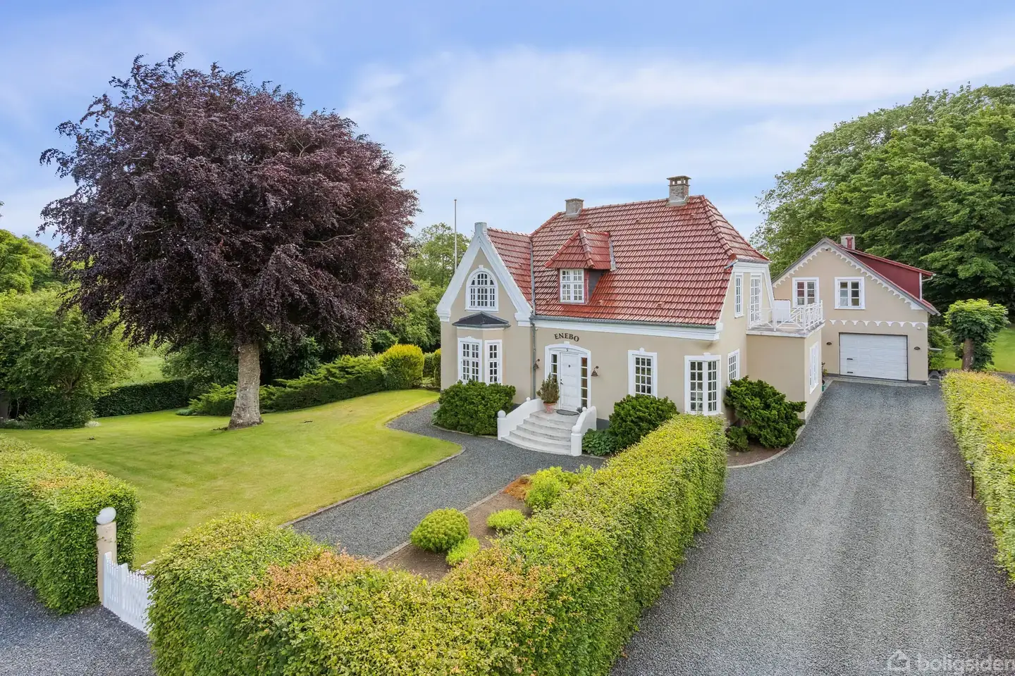Enestående ejendom i Ringe.Selvom ejendommen er navngivet “Enebo”, er det på ingen måde en sag for den enlige. Tværtimod er her tale om et rummeligt hjem med plads til den store familie og sågar et hold bedsteforældre eller en lejer. Foruden det charmerende stuehus med et klassisk og herskabeligt udtryk er der nemlig en separat boligenhed på overetagen af garagen og udhuset. Grunden tæller godt og vel 2.500 kvm og toner frem med en swimmingpool og et parklignede haveanlæg. Fantastiske lysindfal