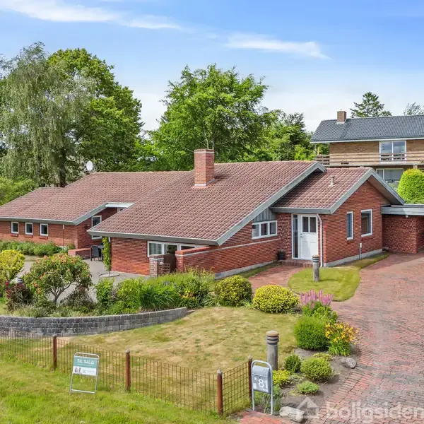 Spændende kvalitetsvilla i Gjellerup I Gjellerup ved Herning ligger denne formidable kvalitetsvilla, der ikke alene præsenterer sig med et hav af lækre detaljer, men også byder på en velkomponeret planløsning i form af flere lyse opholdsrum og fire regulære værelser og to badeværelser. Den solrige have matcher villaens nydelige æstetik, og som prikken over i’et får I et attraktivt lokalmiljø med korte afstande til alt, hvad I skal bruge. Ejendommen er fuldmuret. Facaden er gjort i røde murste