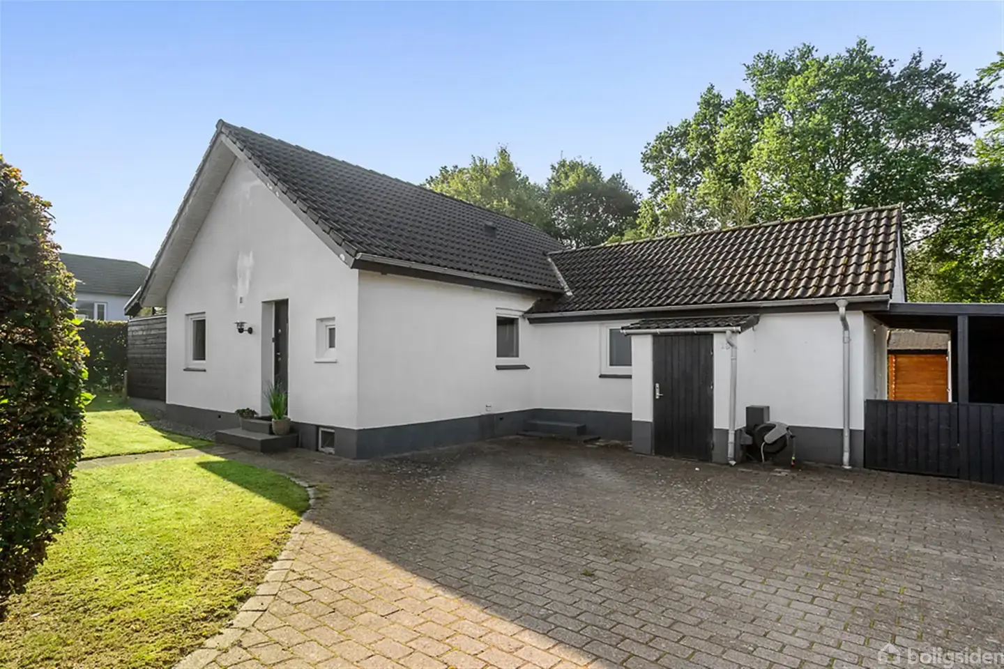 Det gode lysindfald og den dejlige, ugenerede have er blot noget af det, der skal fremhæves ved ejendommen her på Nygade 18 i Brørup. Huset kan nemlig også fremvise en fin og veldrejet planløsning, hvor pladsen er udnyttet optimalt, og samtidig har den en rolig placering, som er dejligt tryg for selv de alleryngste. Mere præcist ligger ejendommen på en lukket vej i den velfungerende stationsby, der har skole, daginstitution, idrætshal og et fint udvalg af indkøbsmuligheder. Bag huset ligger haven, som er sydvendt, og da den grænser lige op til Johannes Kirkegård, har I ingen naboer bagtil. Der er i øvrigt en hæk og et flot bælte af store træer mellem matriklen og kirkegårdens grønne arealer, så haven er lukket godt af, og da den samtidig er anlagt enkelt med græs, kan fritiden bruges på leg og afslapning. På grunden er der også et bålsted og en overdækket terrasse foruden et skur, som pt. bruges som motionsrum. Etplansvillaen rummer 86 m2, og den er placeret perfekt i forhold til verdenshjørnerne, så atmosfæren er lys og indbydende. Forældresoveværelset og børneværelset er eksempelvis vendt mod syd, og mens køkkenet får morgensol, kan I nyde aftensolen i de to stuer mod vest. Trods boligens overkommelige størrelse, kan den ligeledes fremvise to pæne brusebadeværelser og to indgangspartier. Ring for nærmere information!