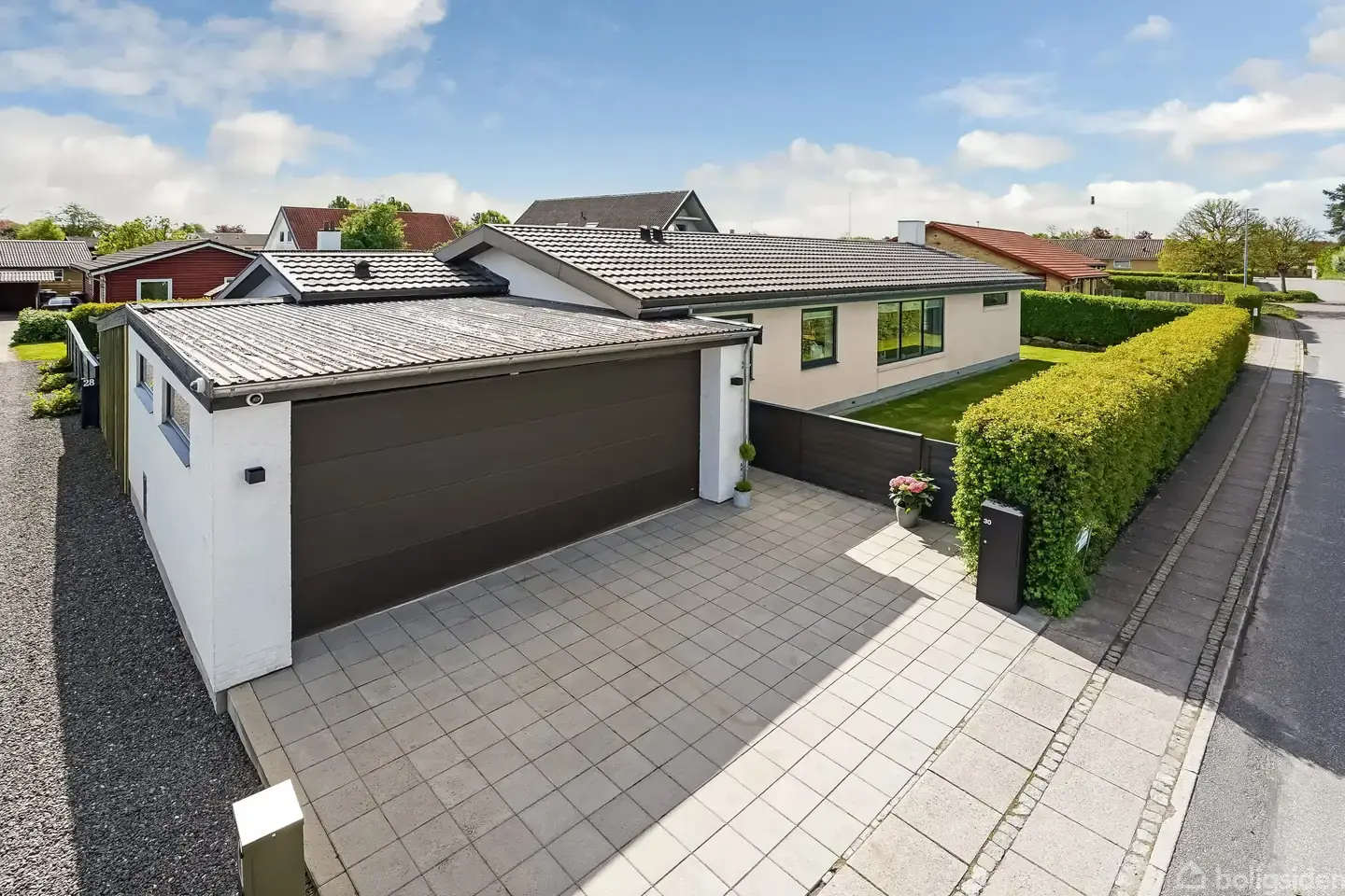 På en stille og børnevenlig vej finder du denne dejlige villa i et plan, som løbende er moderniseret, inde som ude. Med et boligareal på 160 m² + integreret garage på 47 m², finder du her en velindrettet villa med gode og lyse rum. Villaen er løbende moderniseret og fremstår i en flot stand – inde som ude. Villaen er beliggende centralt i Ejby, hvorfra du har kort afstand til togforbindelse, indkøb, skole, sportshal m.m. Villaen er indrettet som følgende: Rummelig entre med adgang til brygge